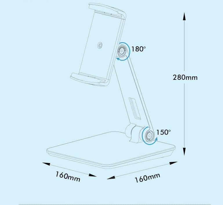 4. Portable folding, double-axis mechanism design, angle and height adjustable.