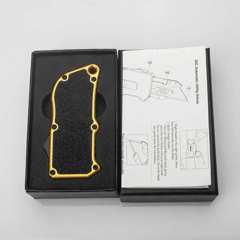 Aluminum Retractable Multi-Purpose Knife, includes 5 SpareBlades -Quick Replacement, EDC Tool Pocket Knife