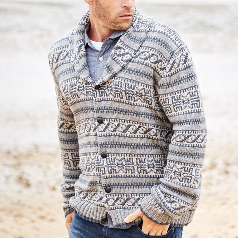 Amazon European And American New Men's Clothing Fall Winter Men Thickened Jacquard Lapel Long Sleeve Cardigan Wool Coat BK0019