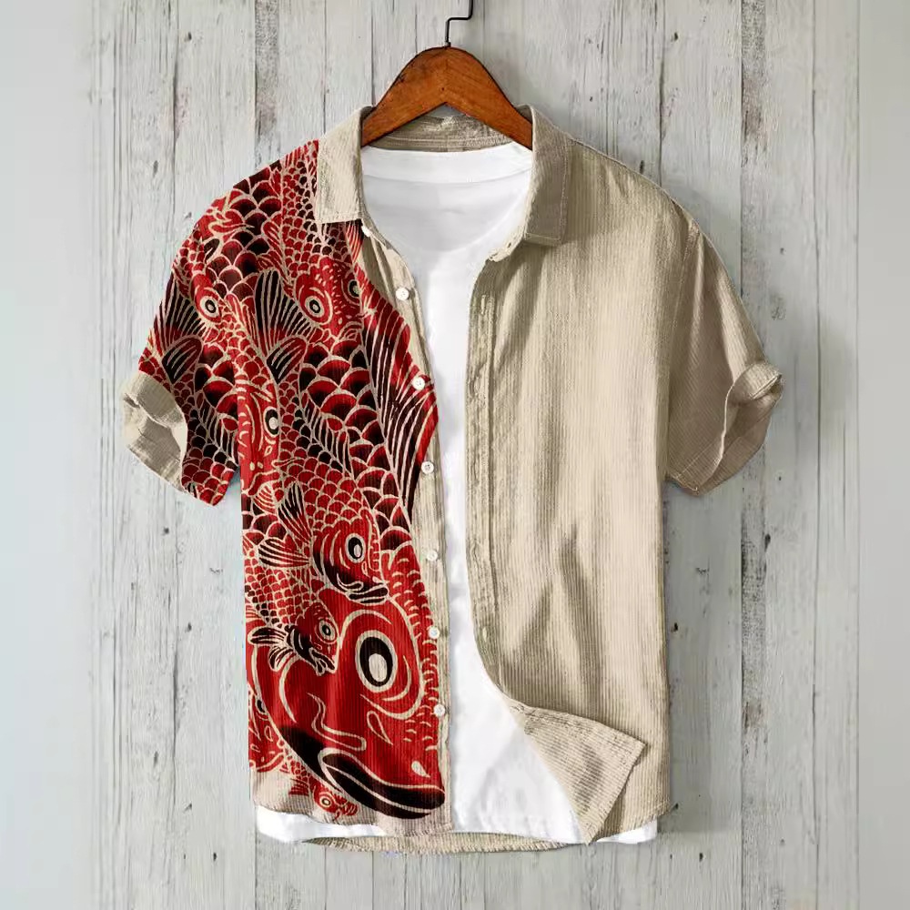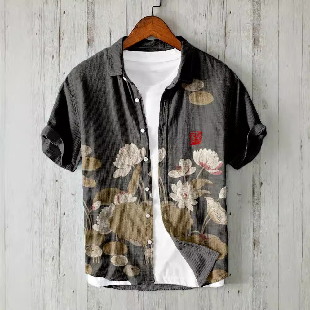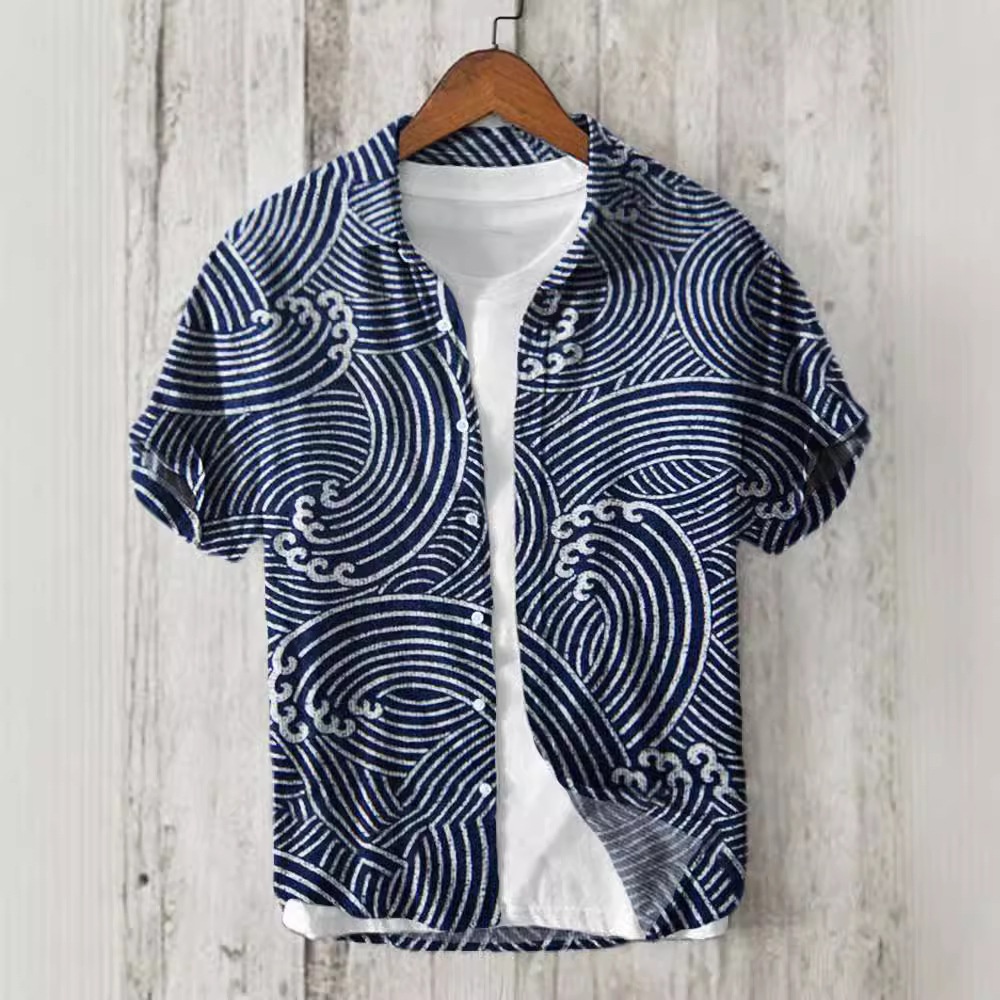 Amazon Independent Station Printed Men's Beach Loose Casual Shirt Top