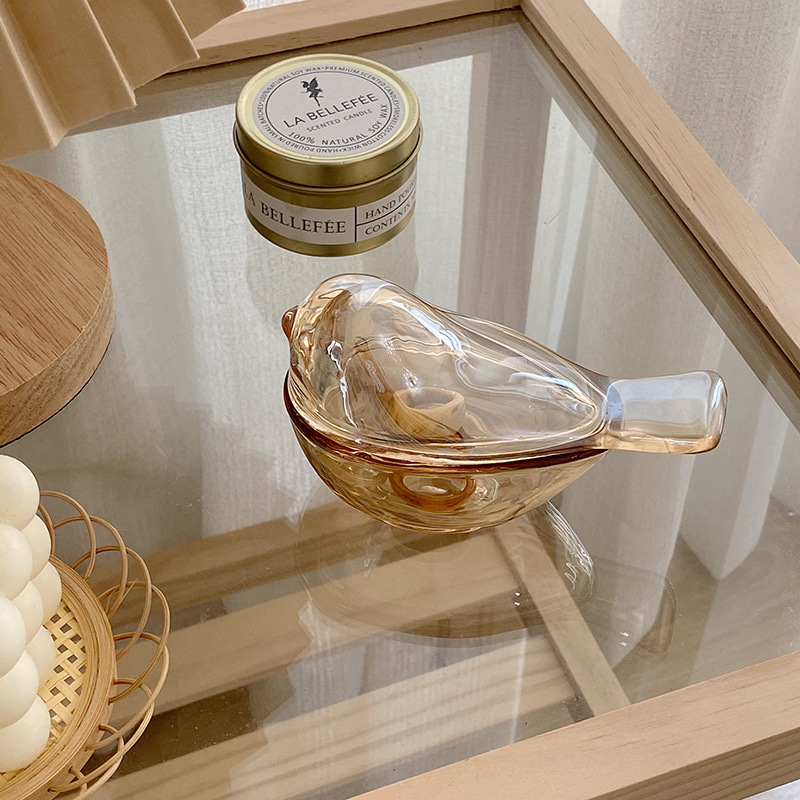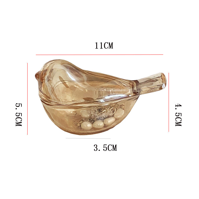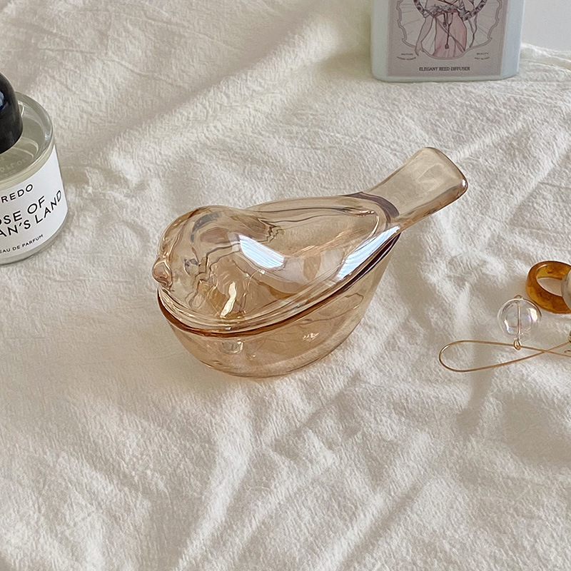 Amber Transparent Glass Bird Jewelry Box Jewelry Storage