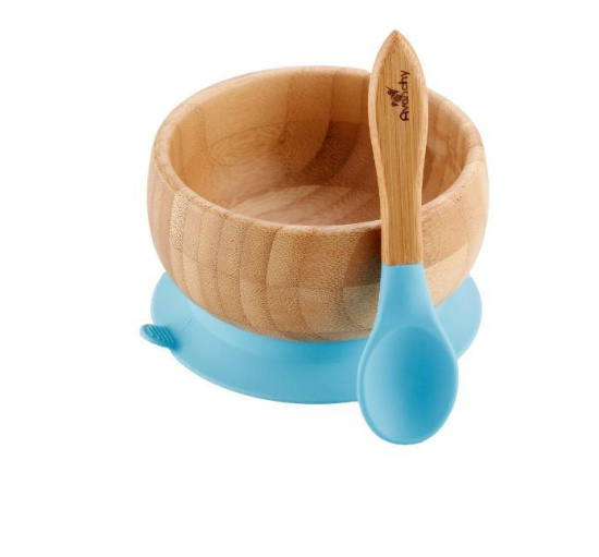 Ciotola e cucchiaio sono realizzati in bambù e silicone.