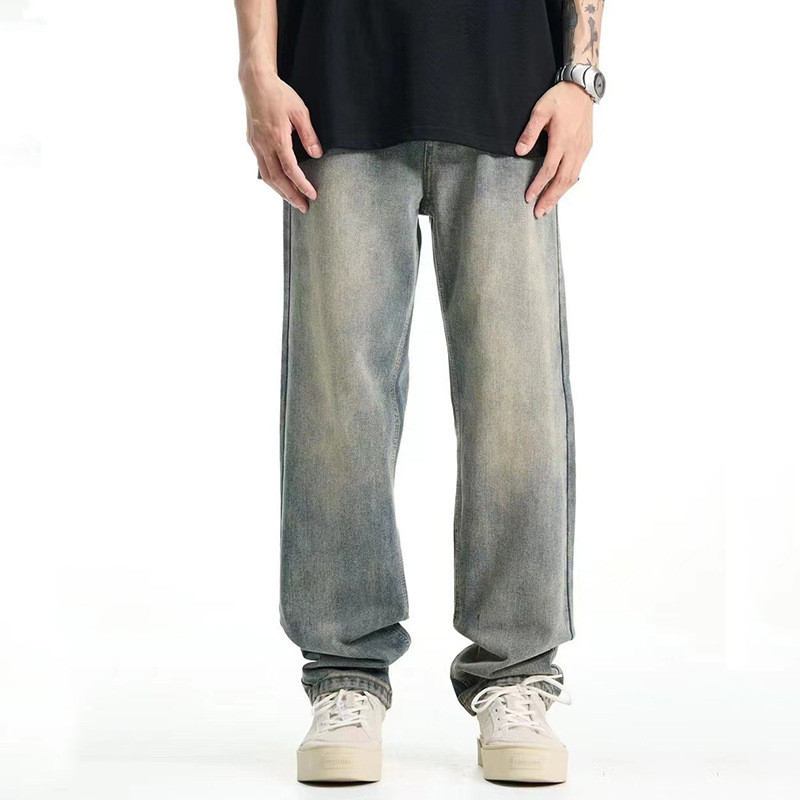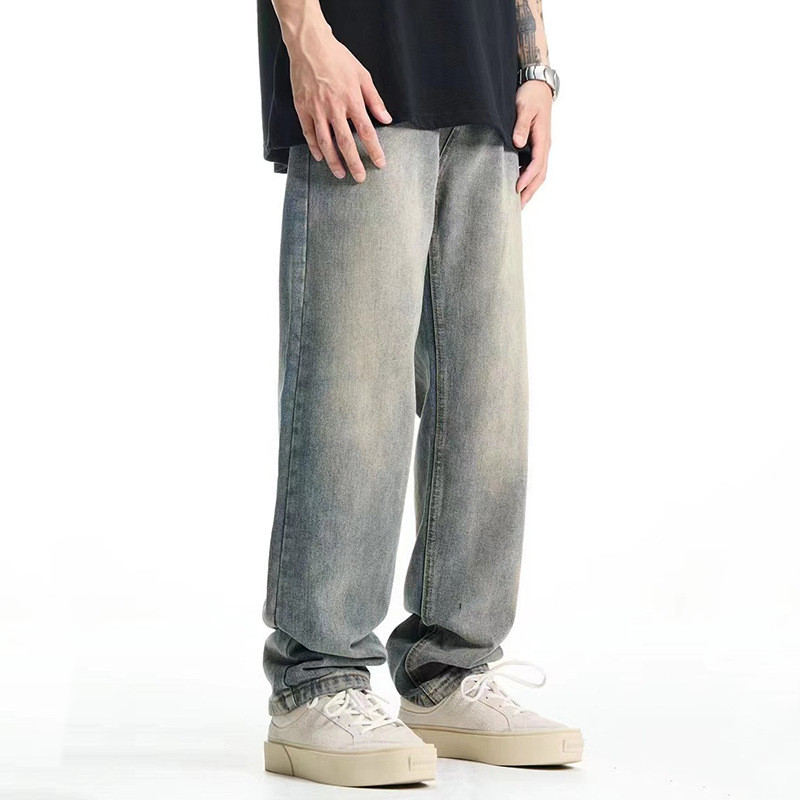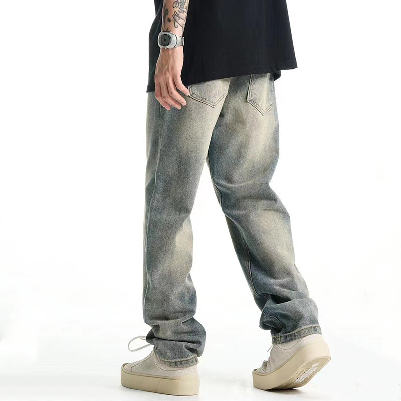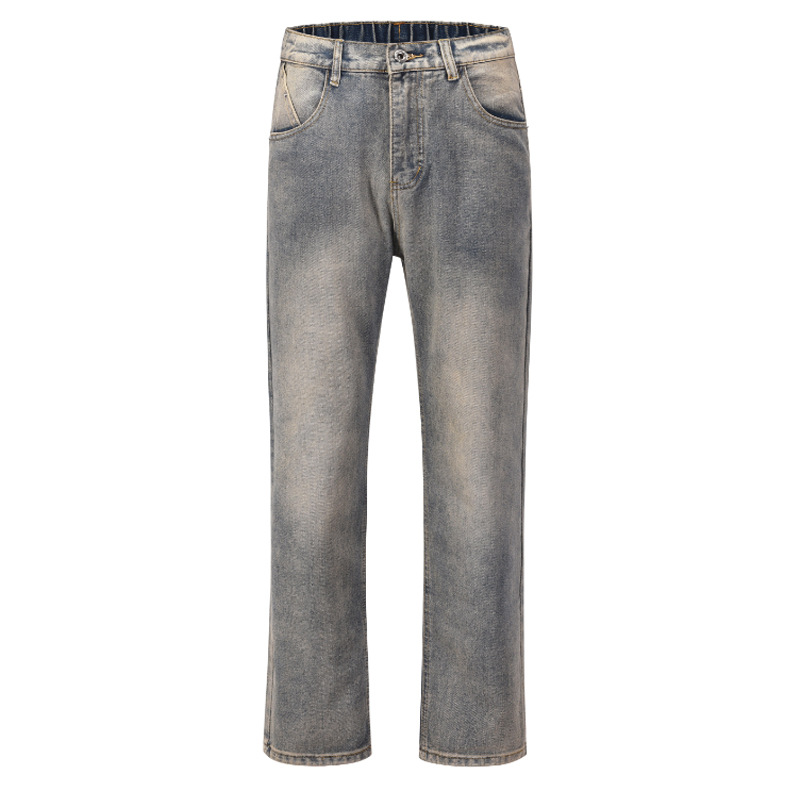 American Casual Elastic Jeans Men's Straight Loose