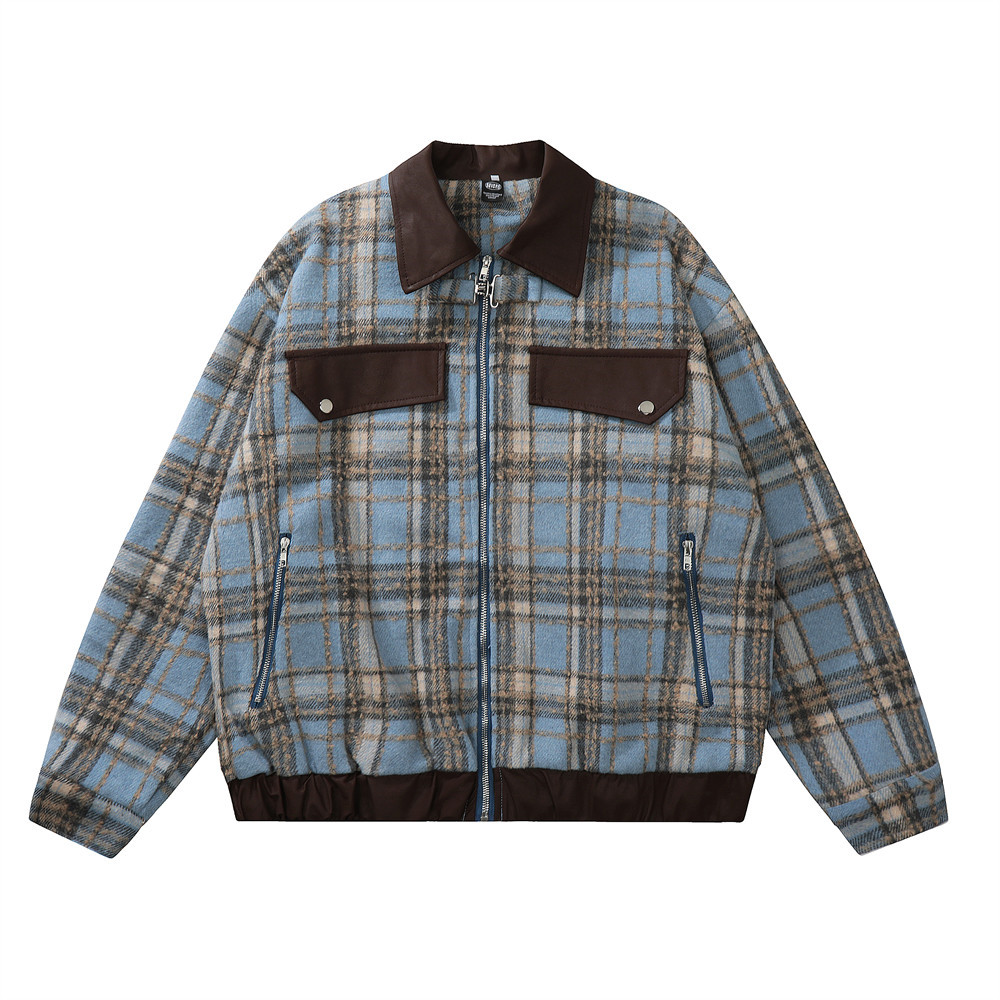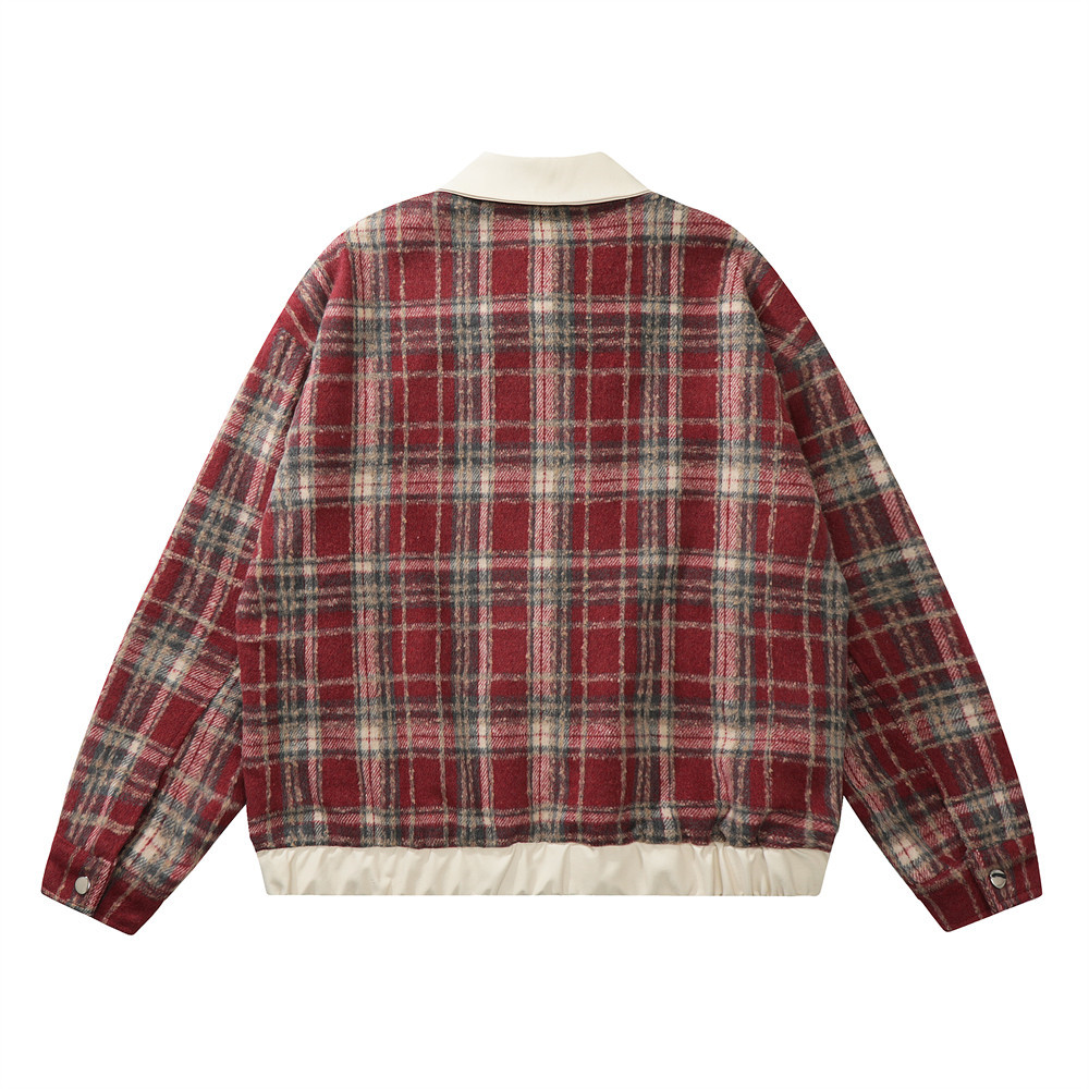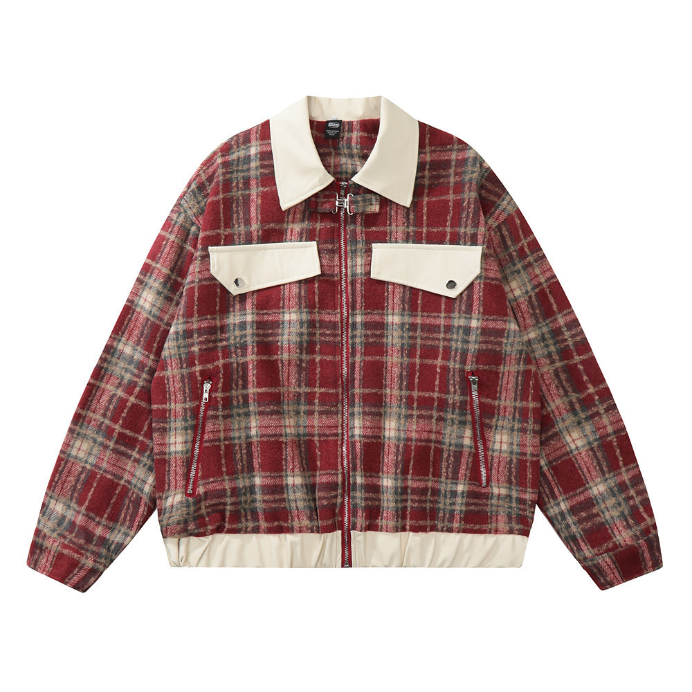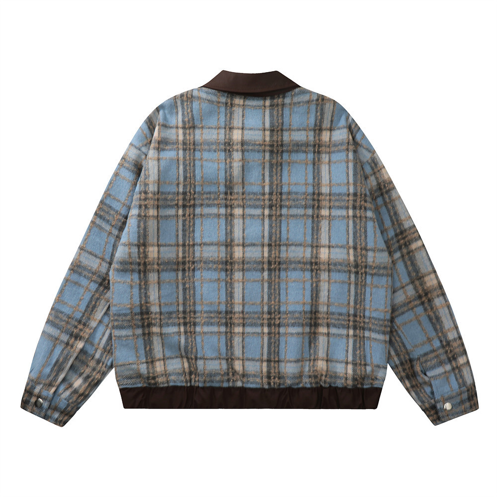 American Color-contrast Check Polo Collar Jacket Men's