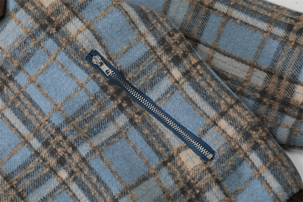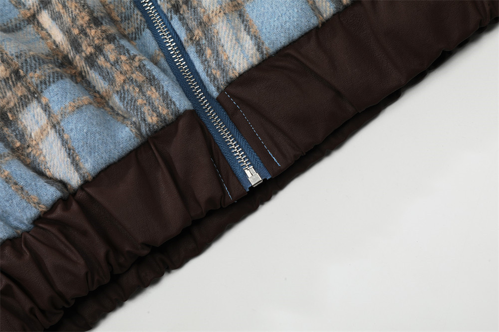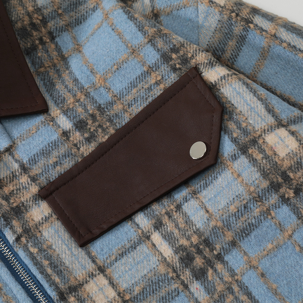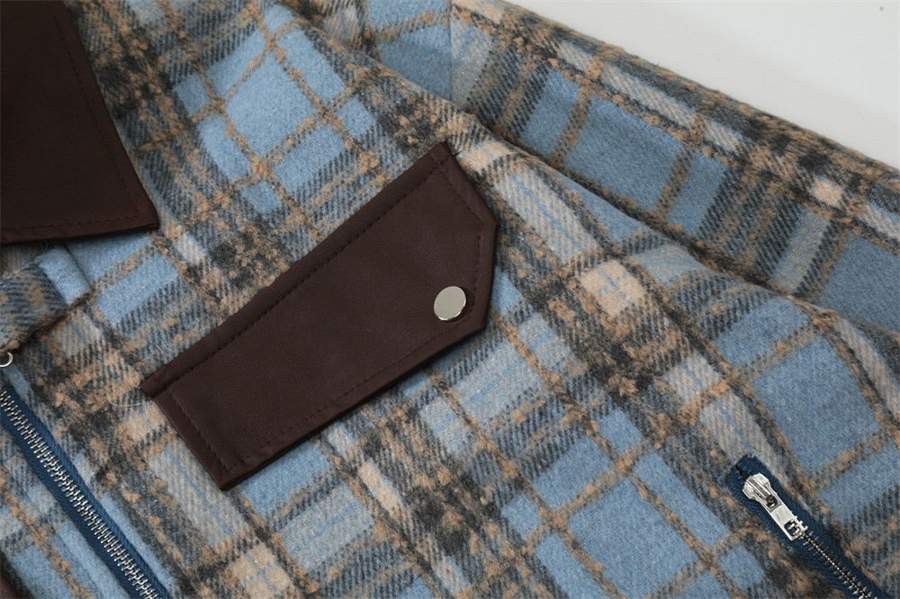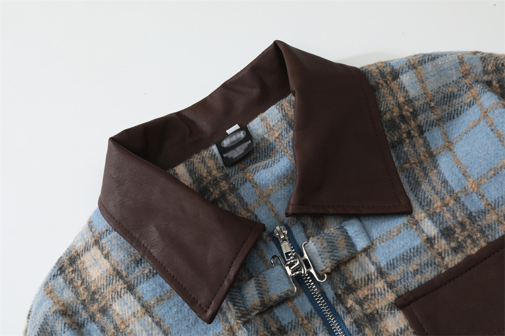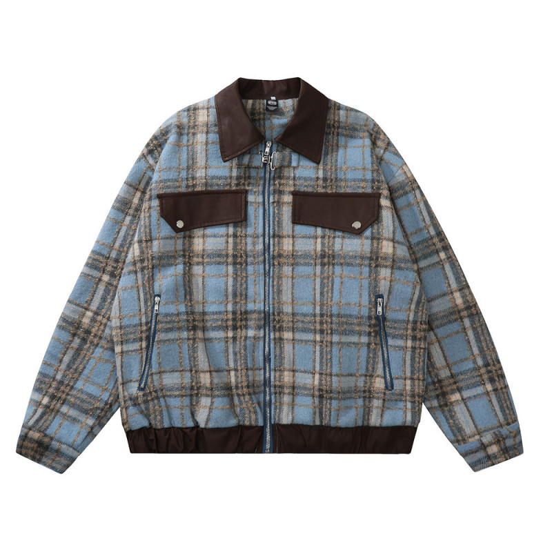 American Color-contrast Check Polo Collar Jacket Men's