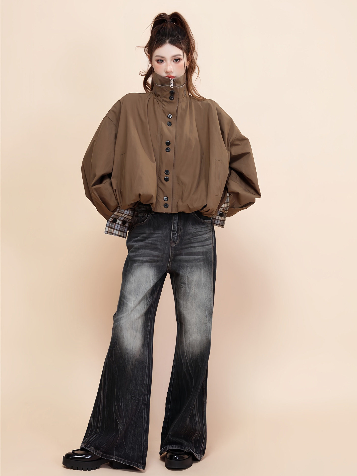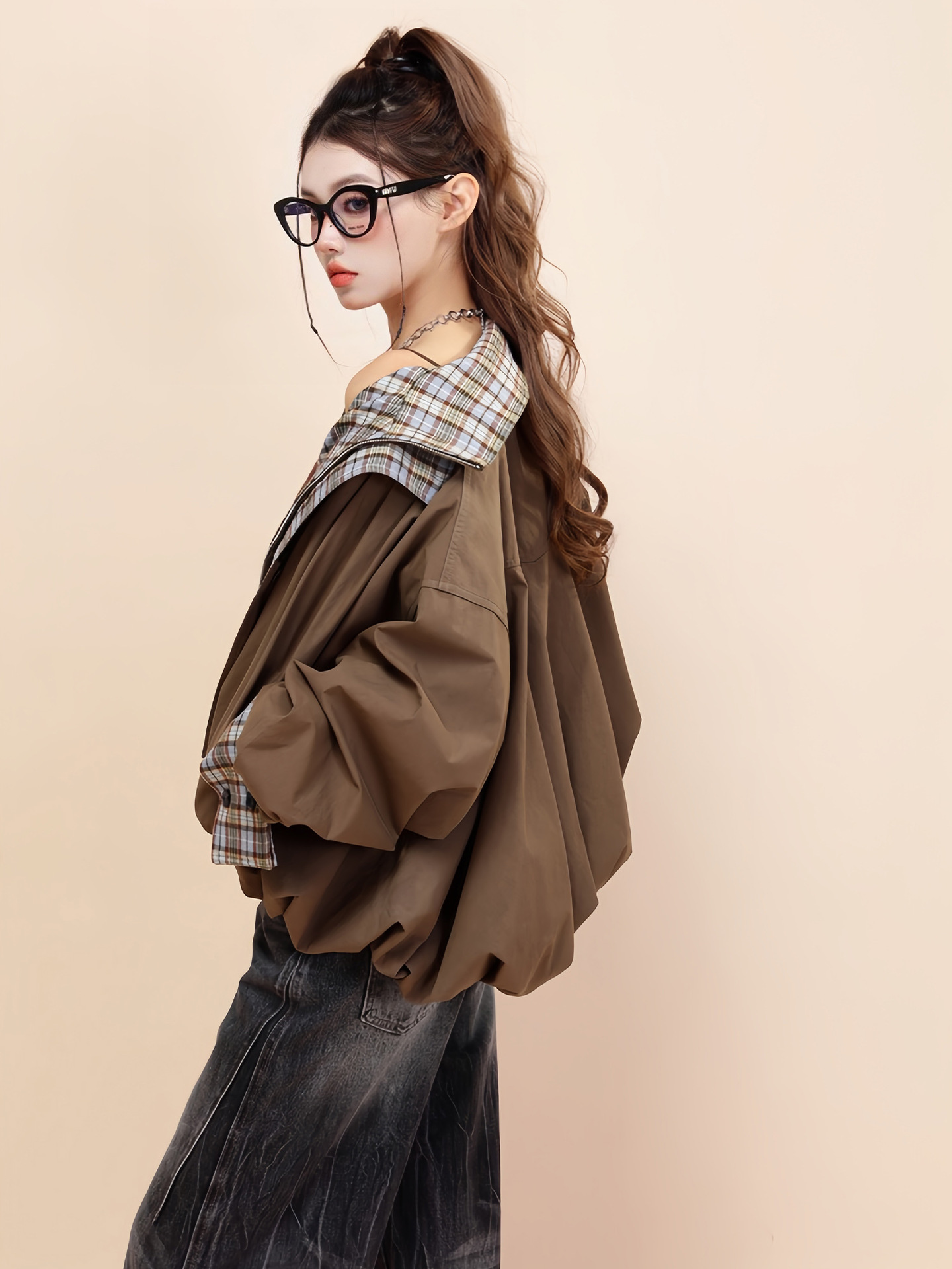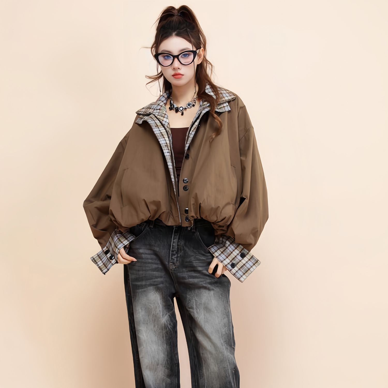 American Contrast Color Brown Double-sided Cotton Retro