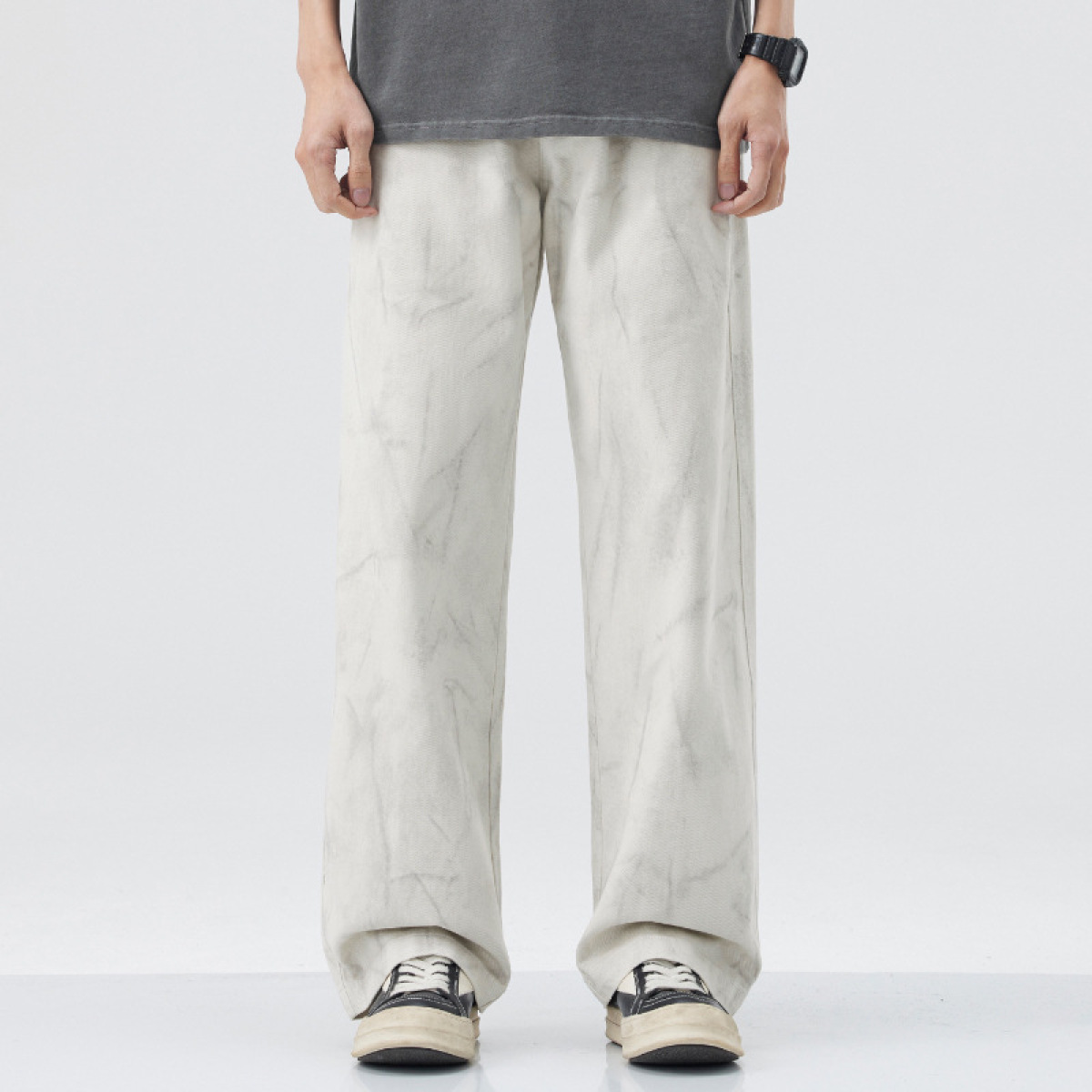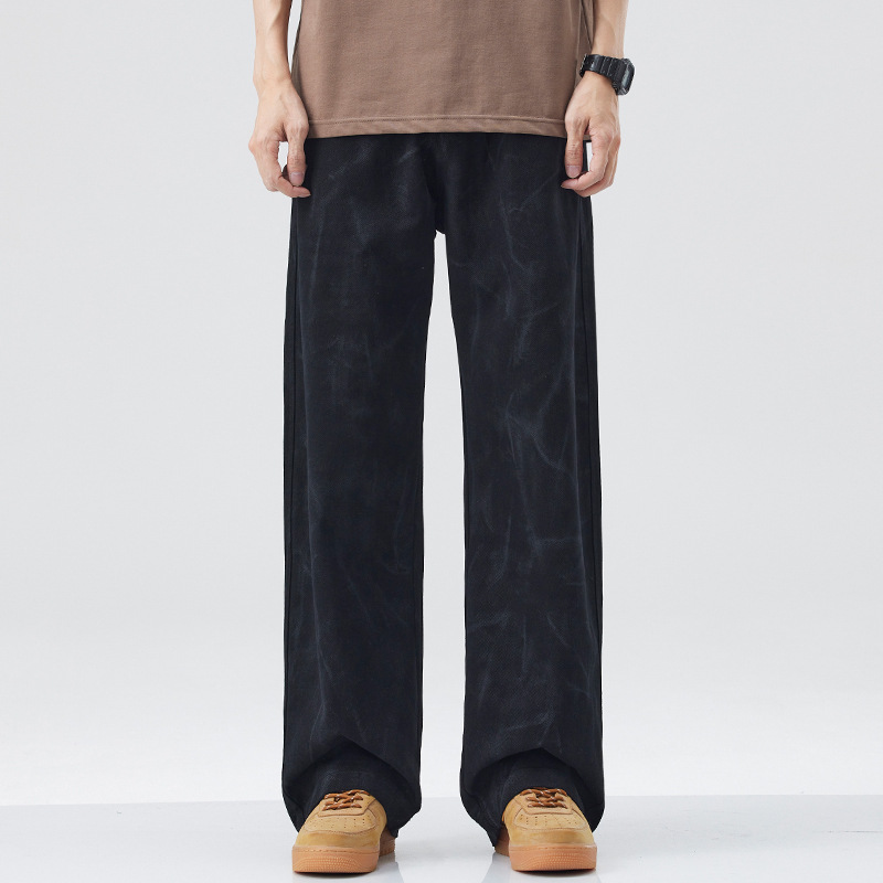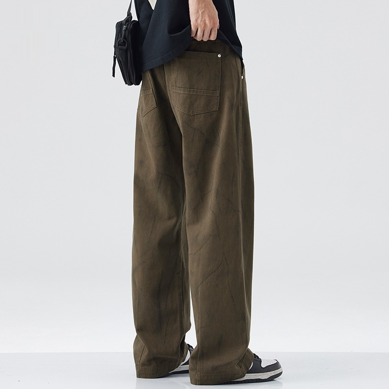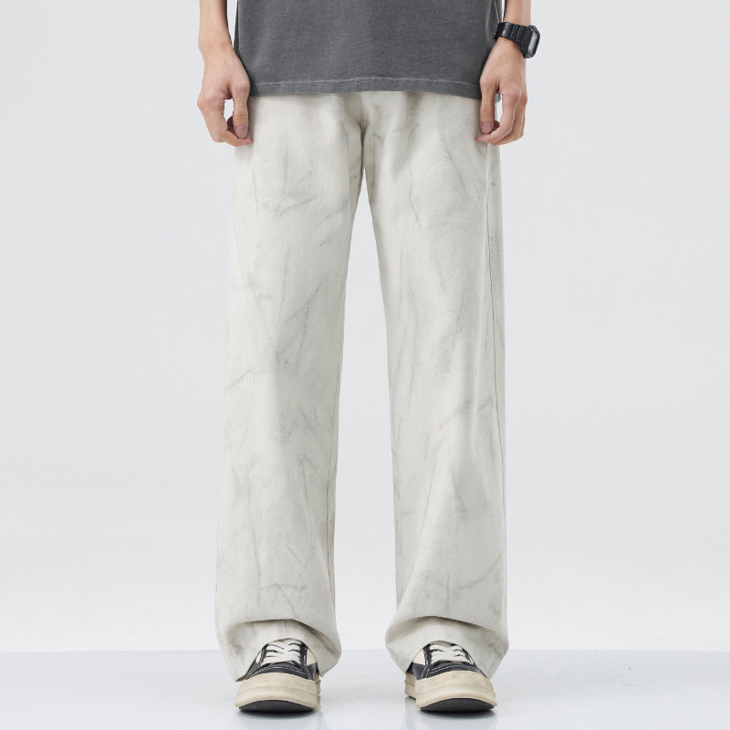 American Fashion Brand Vintage Tie-dyed Cotton Casual Pants Men's Loose Straight Mop Wide-leg Pants