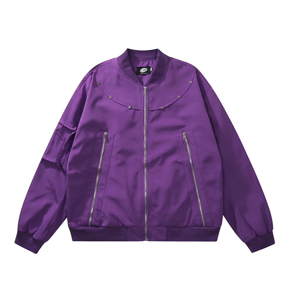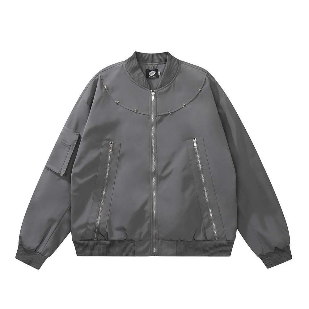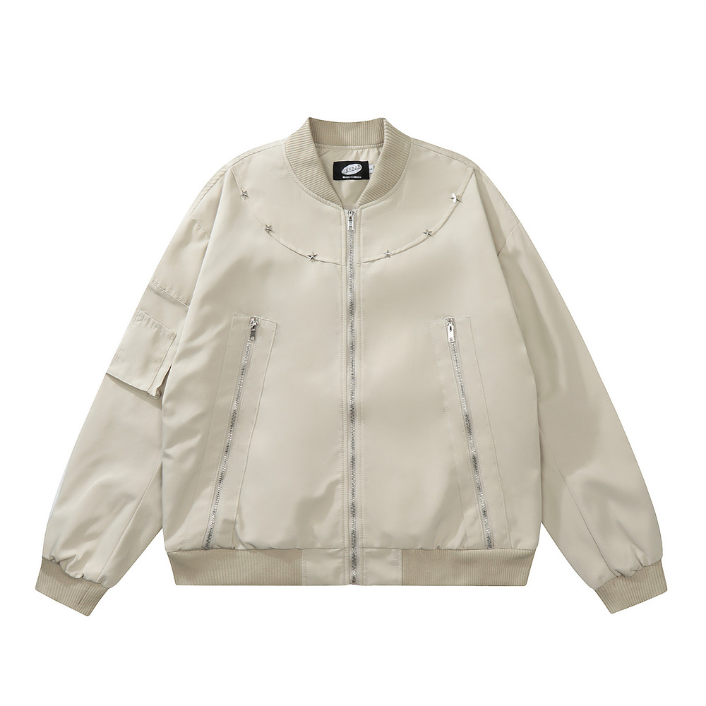 American Functional Jacket Spring And Autumn Zipper Design Stitching Workwear Baseball Uniform