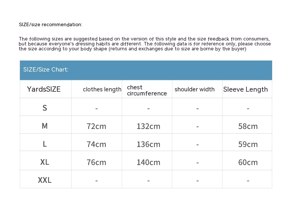 1. Asian sizes are 1 to 2 sizes smaller than European and American people. Choose the larger size if your size between two sizes. Please allow 2-3cm differences due to manual measurement. 2. Please check the size chart carefully before you buy the item, if you don't know how to choose size, please contact our customer service. 3.As you know, the different computers display colors differently, the color of the actual item may vary slightly from the following images.