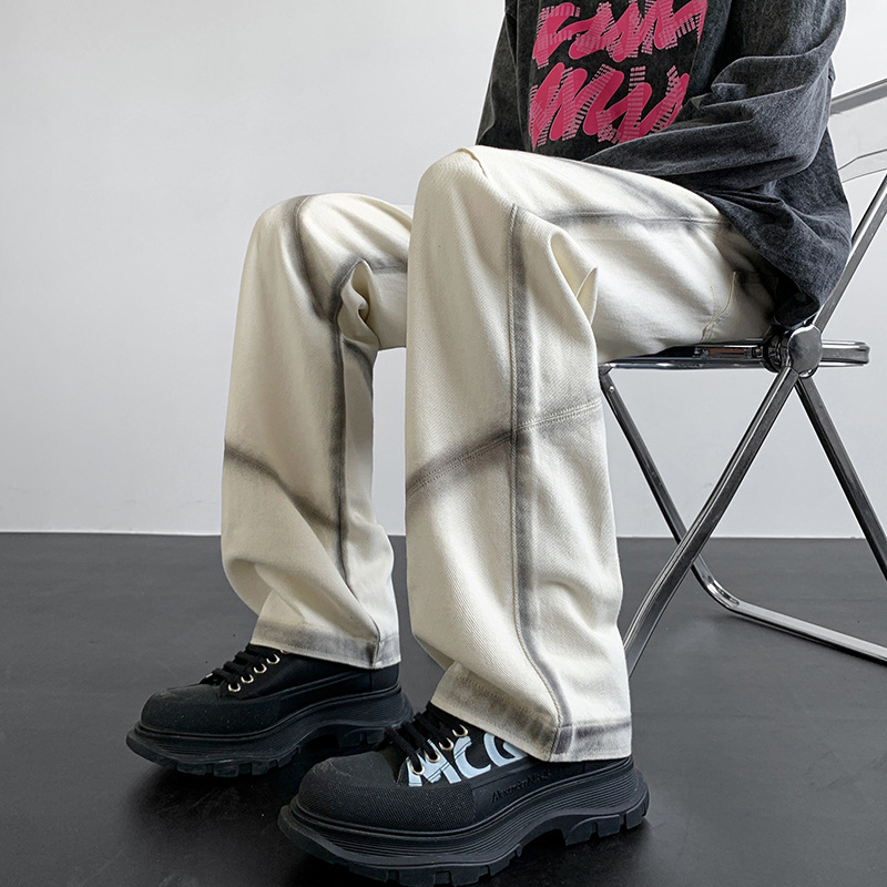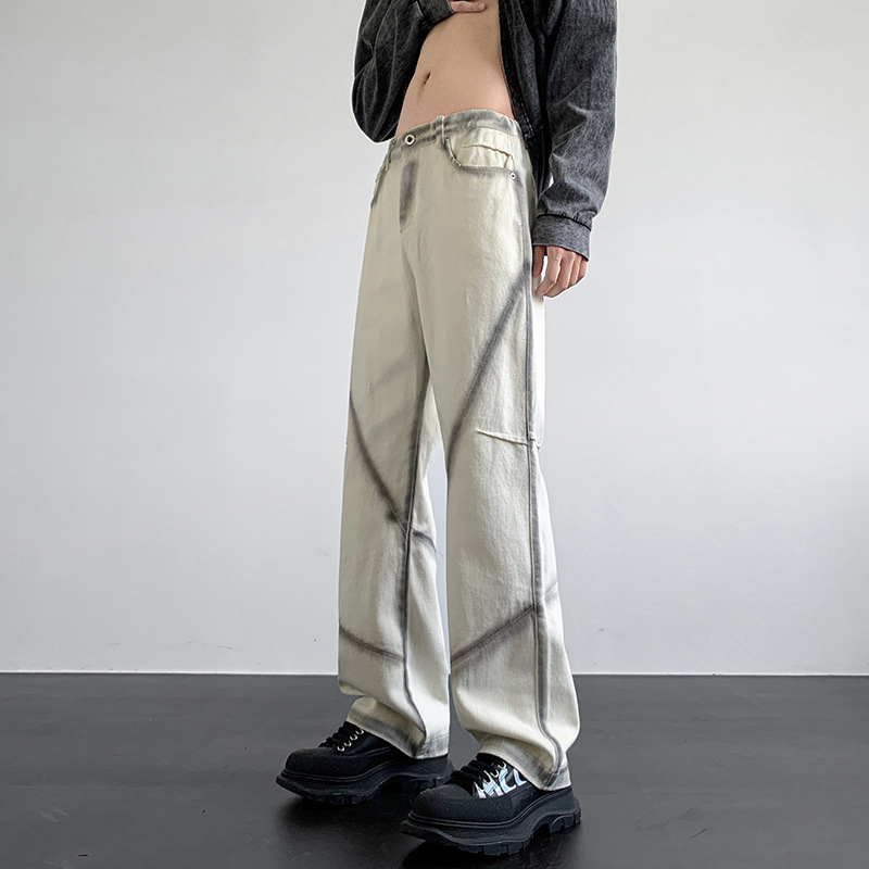 American High Street Open Line Tie-dyed Jeans Light Luxury Minority Fried Street Fashion Brand Summer