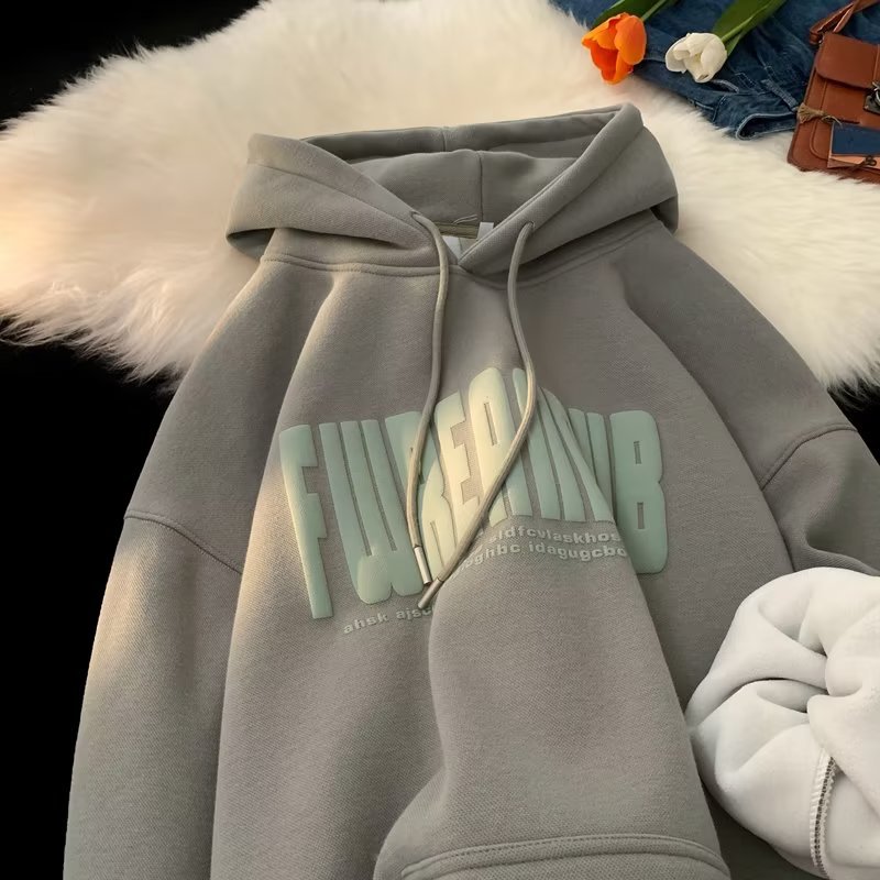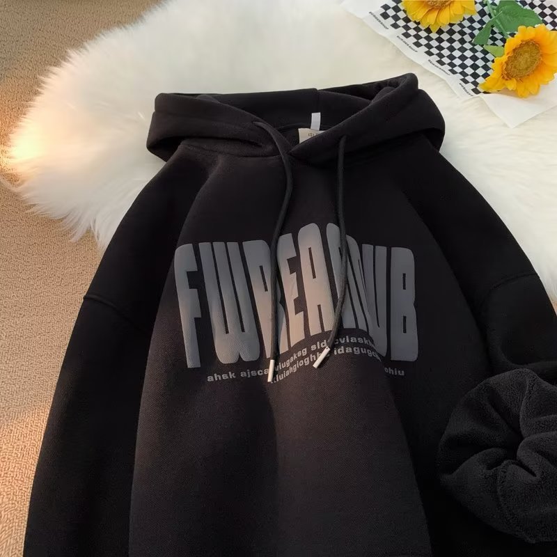 American Hooded Sweater Men's Autumn And Winter New Foam Letter Print Top Versatile Casual