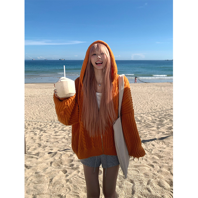 American Idle Style Twist Knitted Hooded Sweater