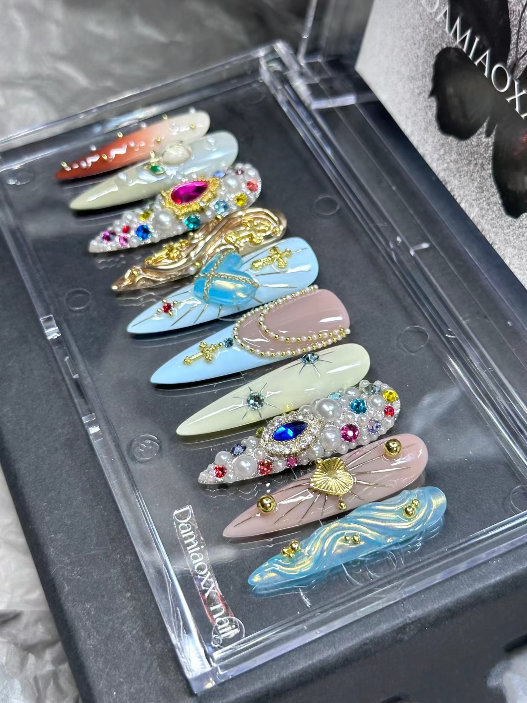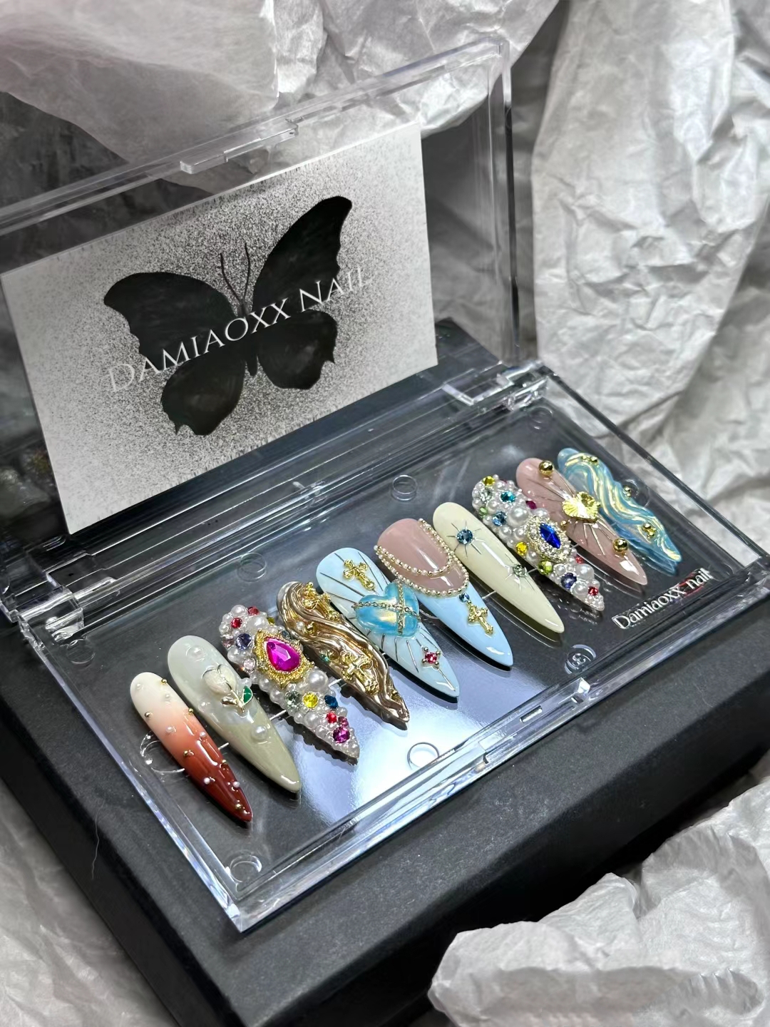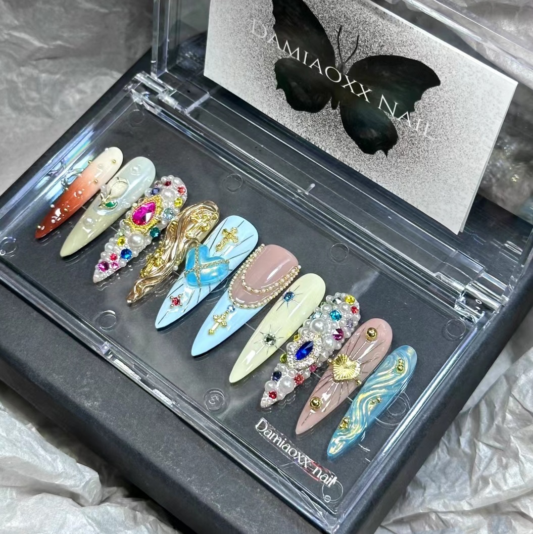 Nail sticker * 10+Jelly glue+Rubbing strip+Wood stick+Alcohol cotton sheet
