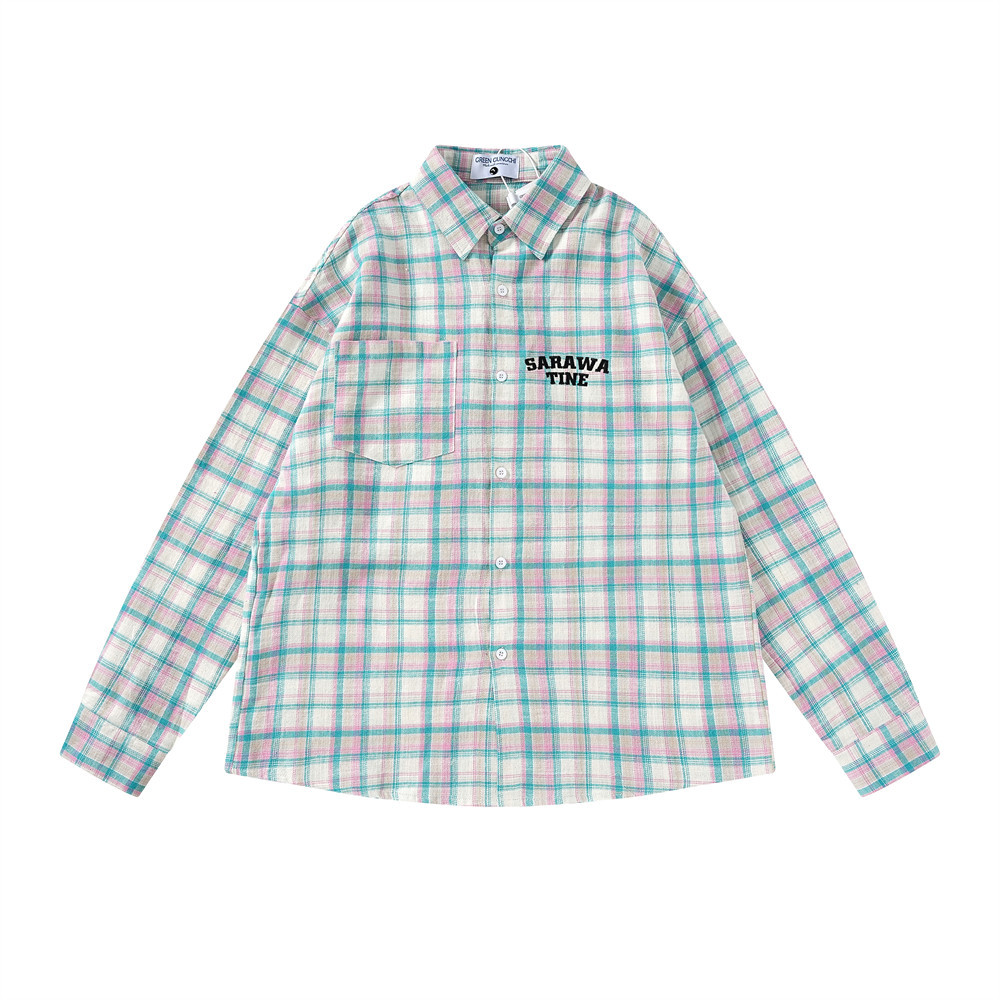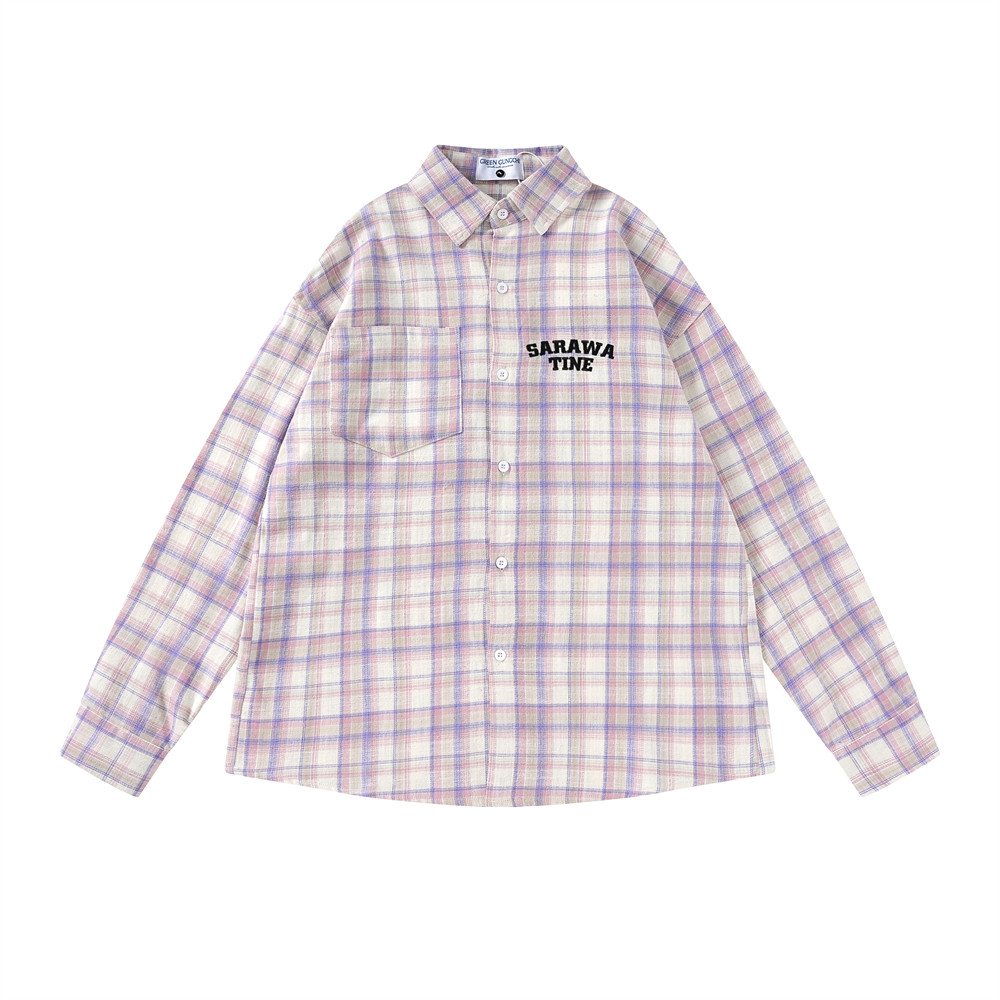Color: pink and green plaid, pinkish-purple plaid, Brown Lange