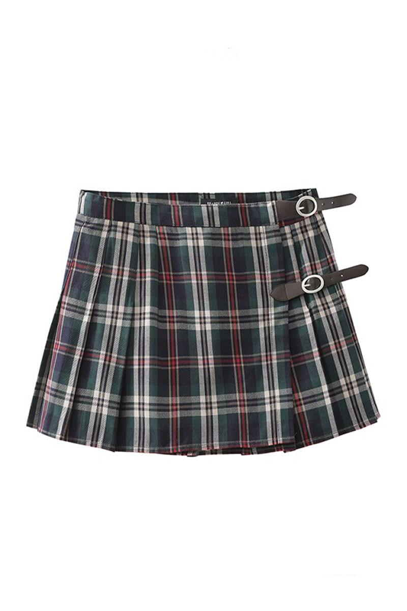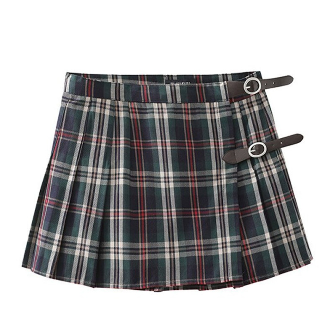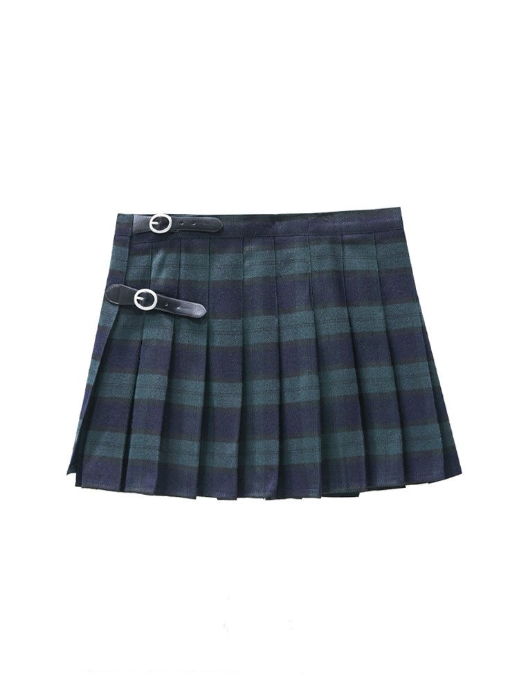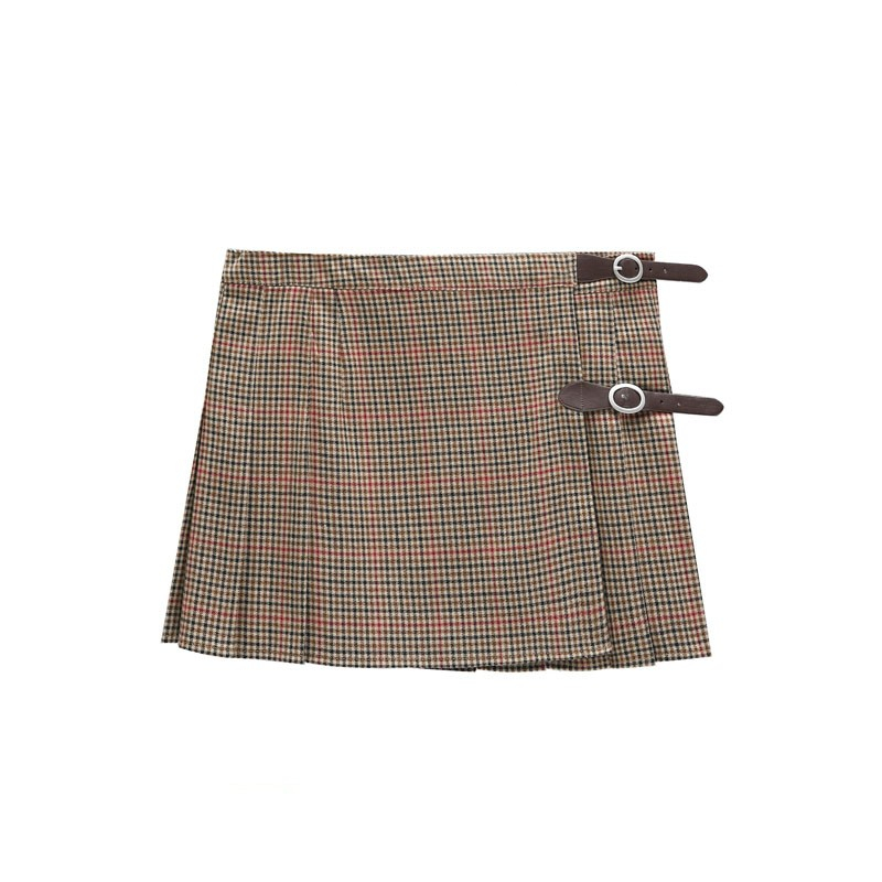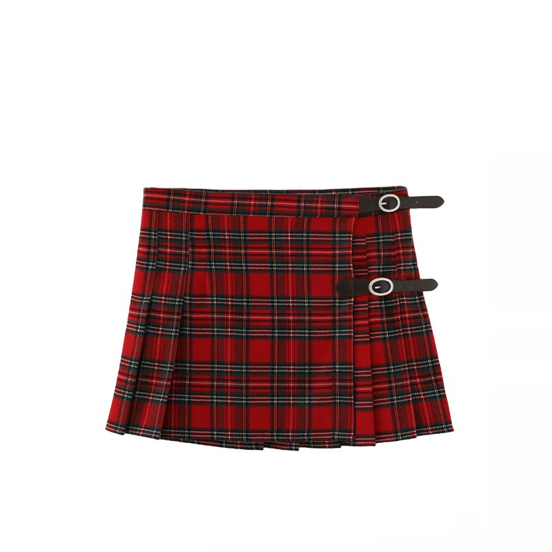 American Pleated Skirt Bm Half Body High Waisted Plaid Short Skirt