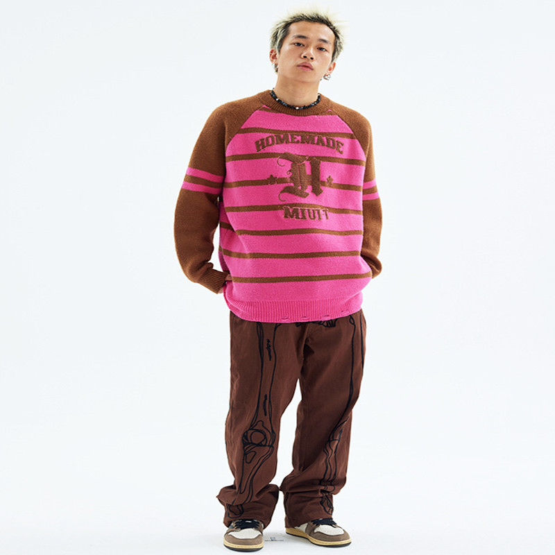 American Plush Striped Tattered Sweaters Cut Men And Women