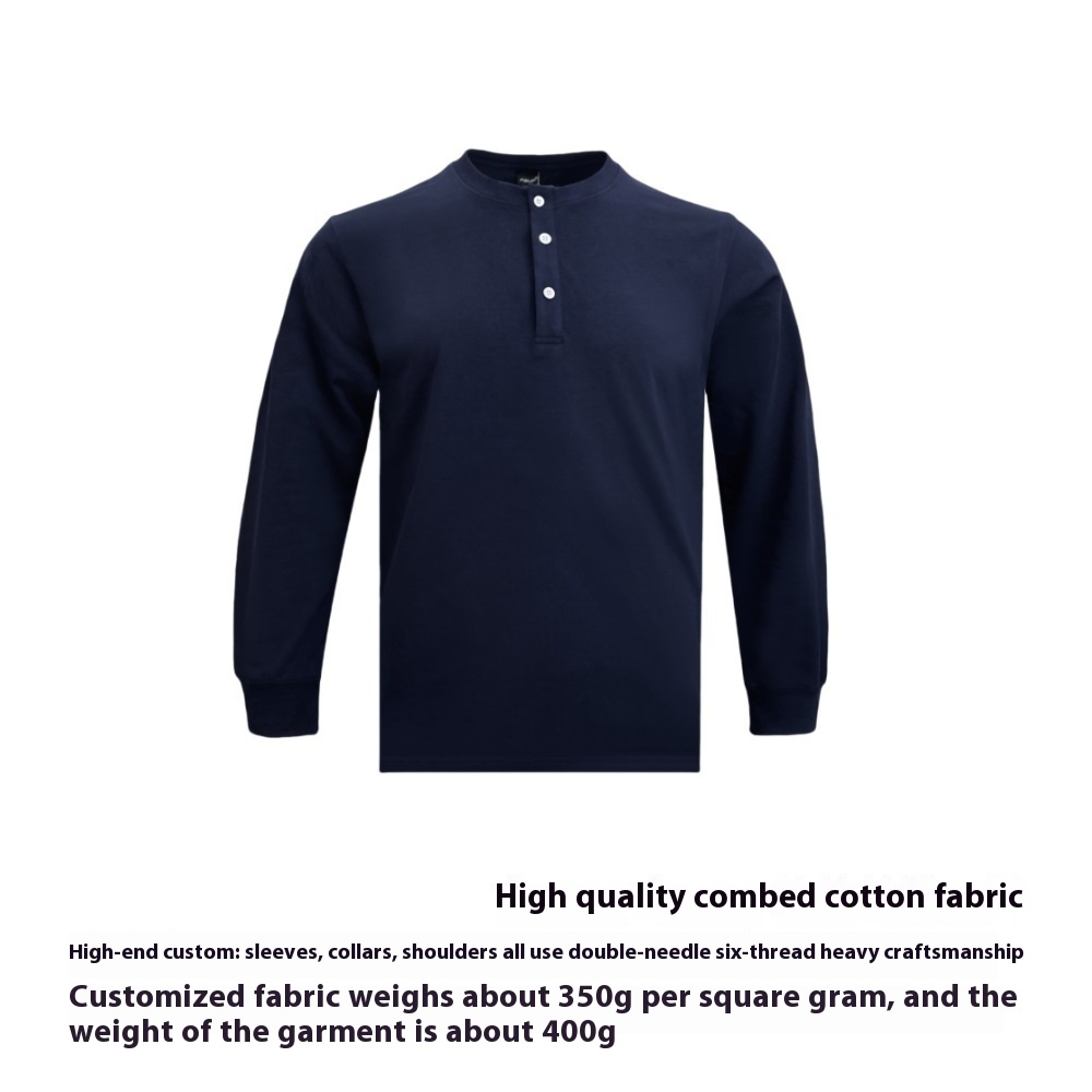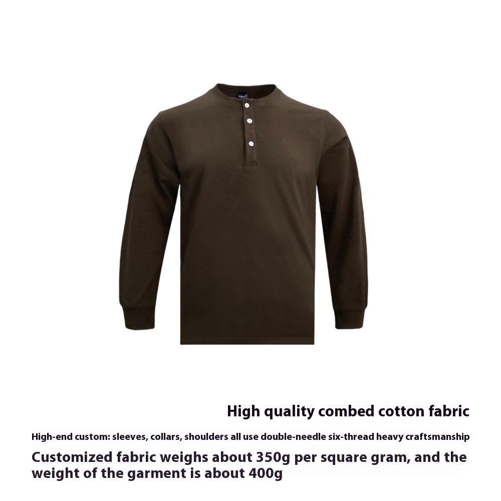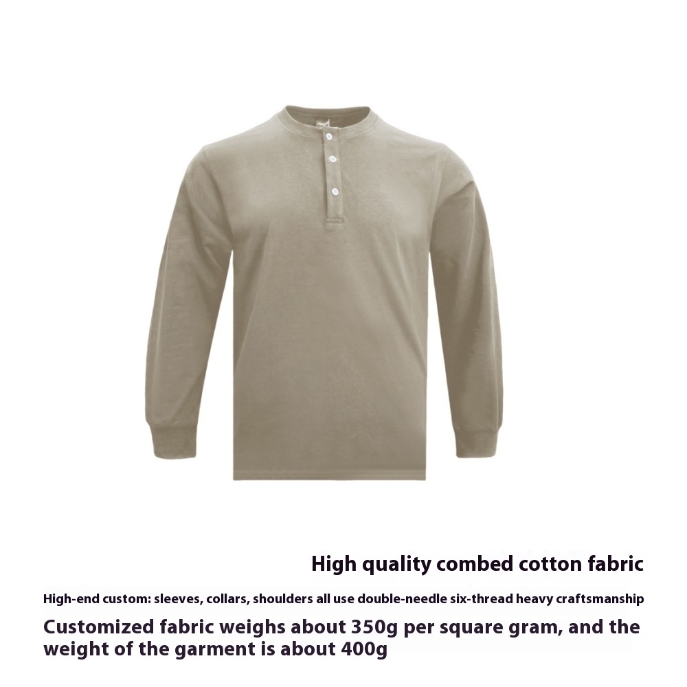 American Retro 320g Heavy Henley Shirt Slim Cotton T-shirt