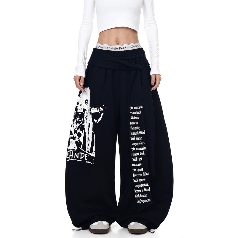 American Retro Alphabet Printed Lace Up Bandage Dress Machete Sweatpants