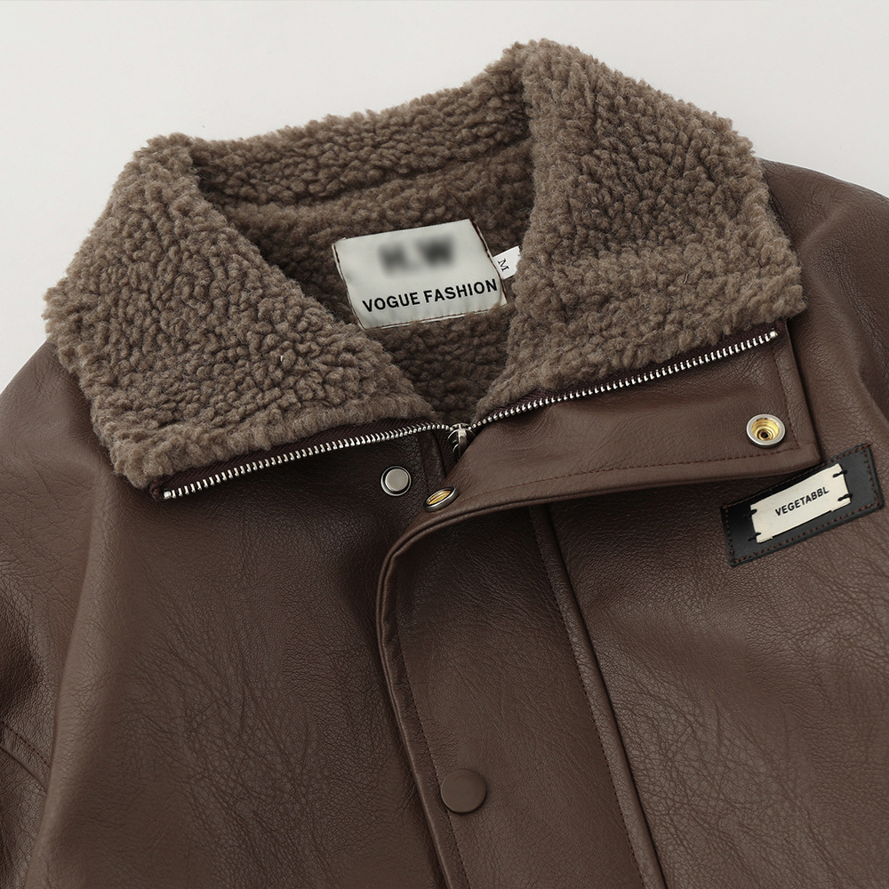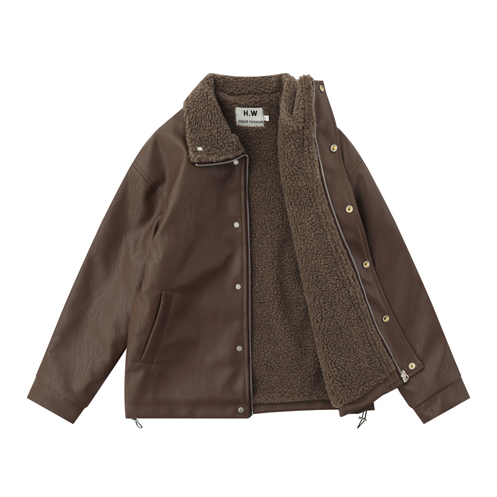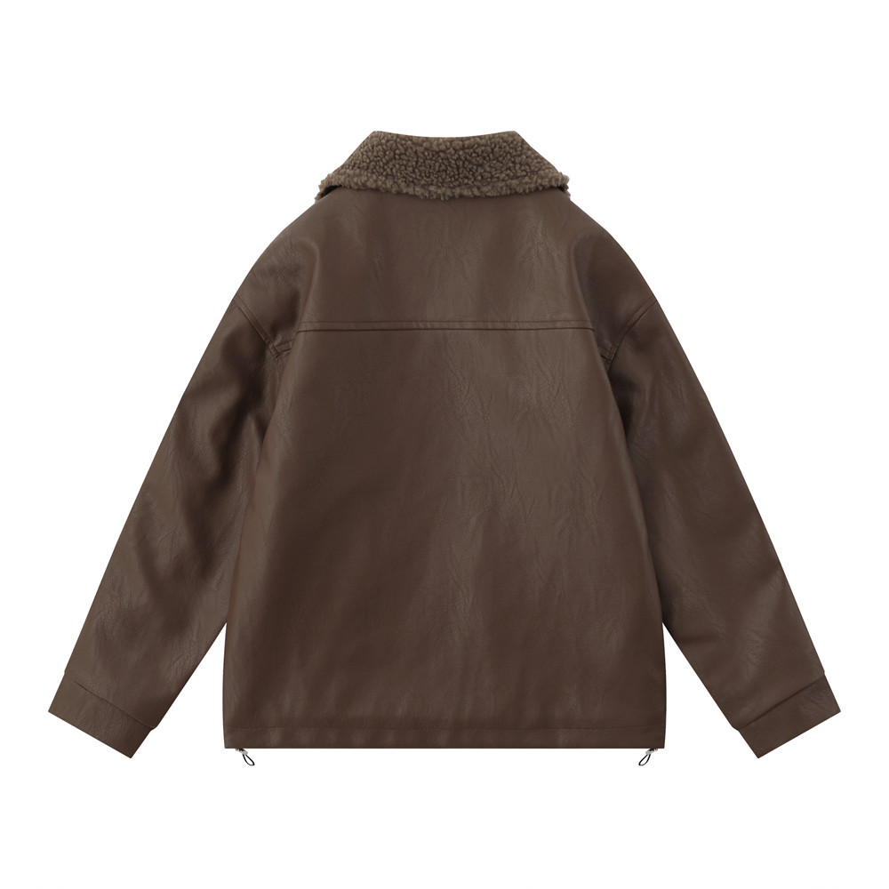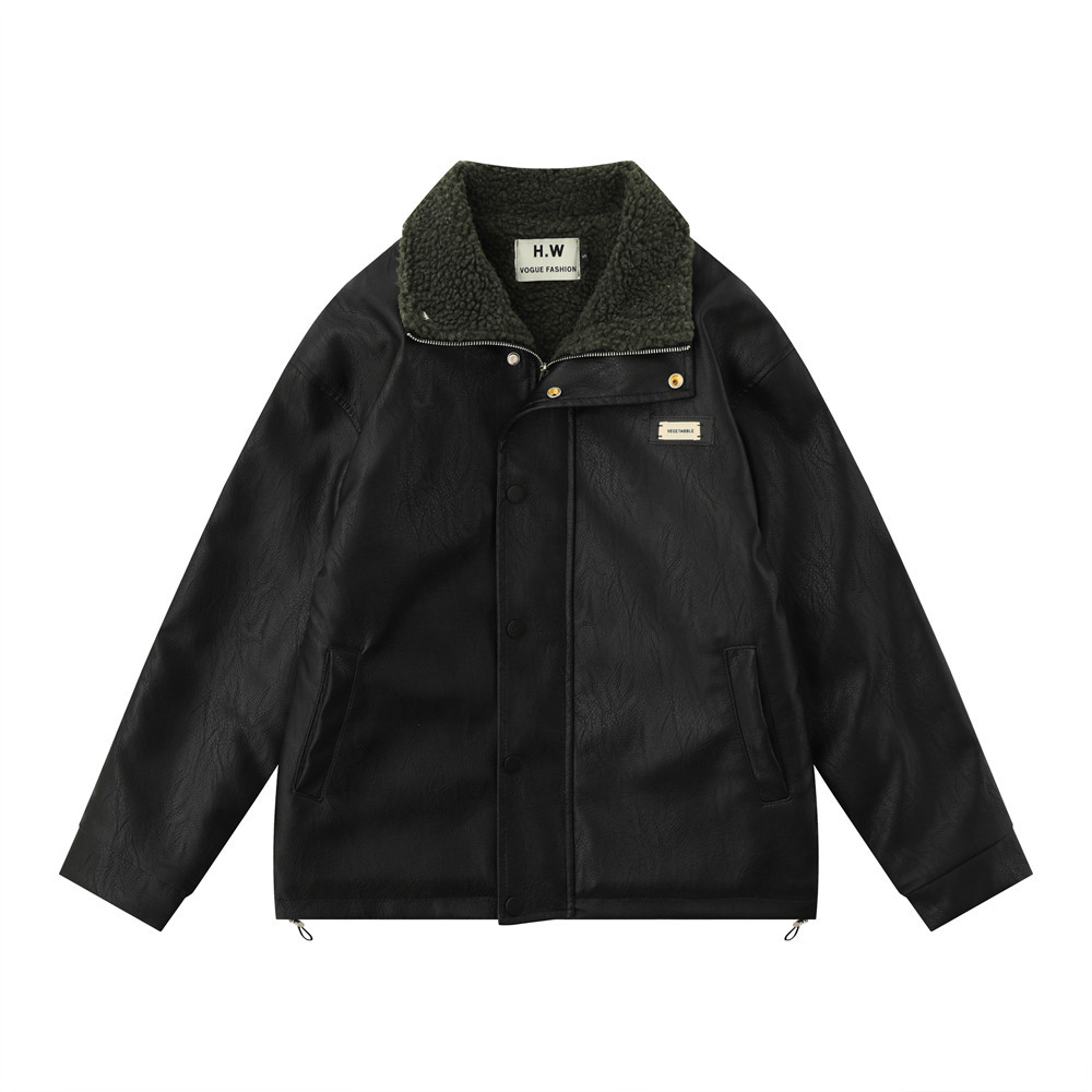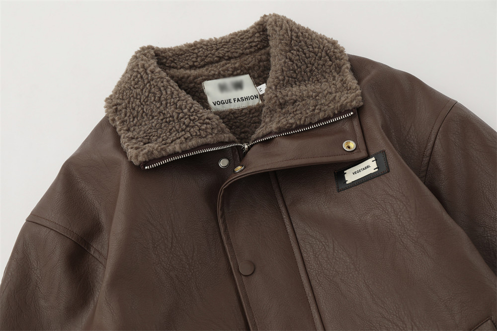 American Retro Autumn And Winter Men's Wear Loose And Warm PU Leather Jacket