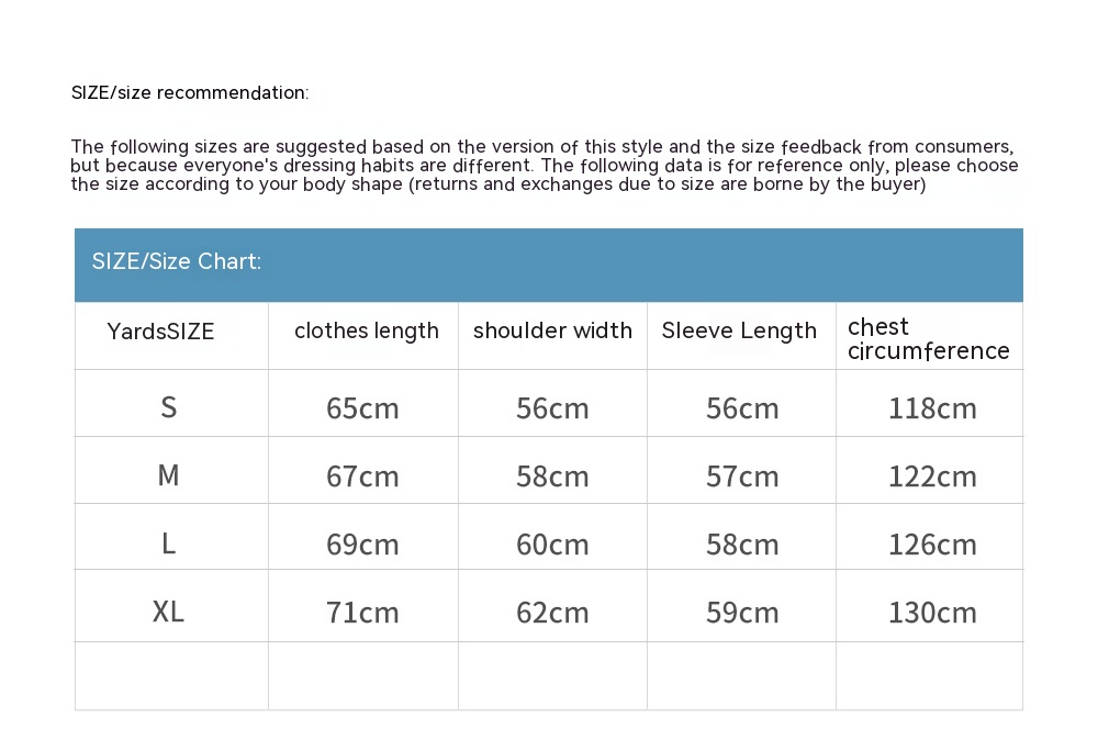 Note: 1. Asian sizes are 1 to 2 sizes smaller than European and American people. Choose the larger size if your size between two sizes. Please allow 2-3cm differences due to manual measurement. 2. Please check the size chart carefully before you buy the item, if you don't know how to choose size, please contact our customer service. 3.As you know, the different computers display colors differently, the color of the actual item may vary slightly from the following images.