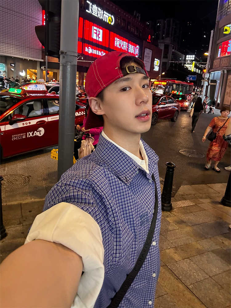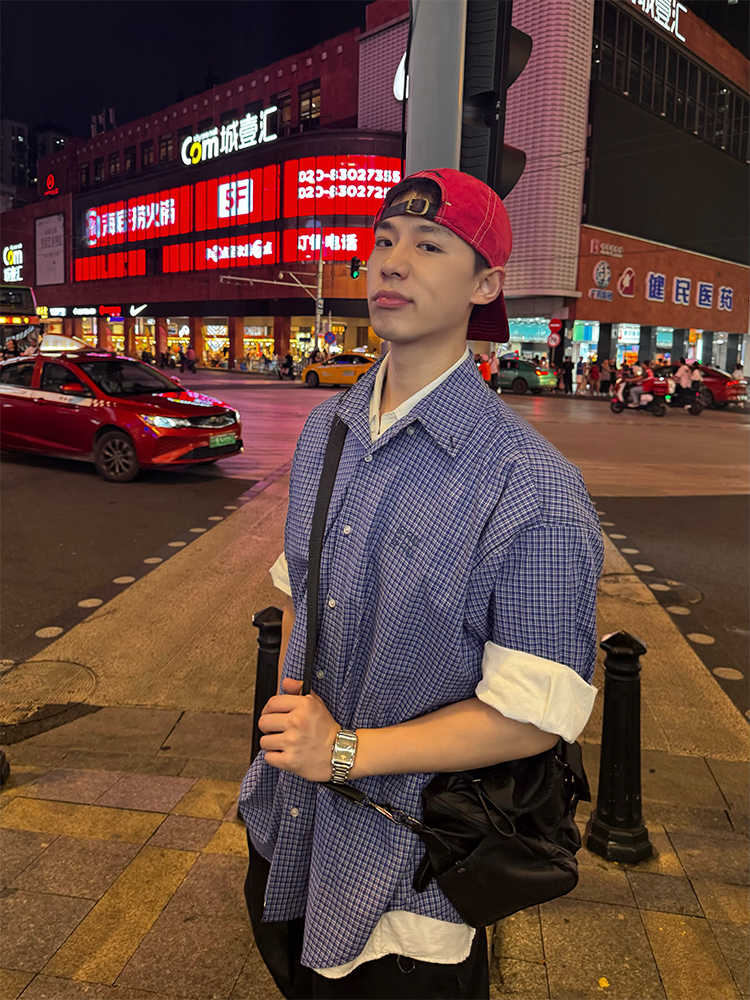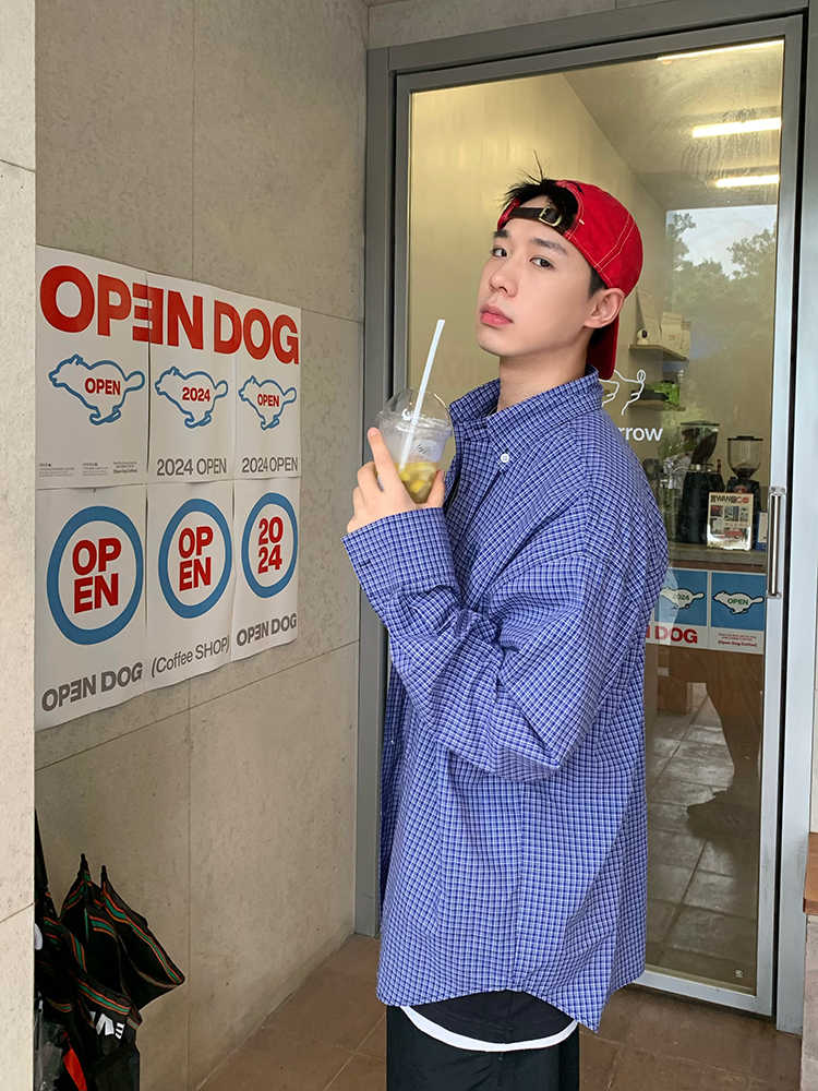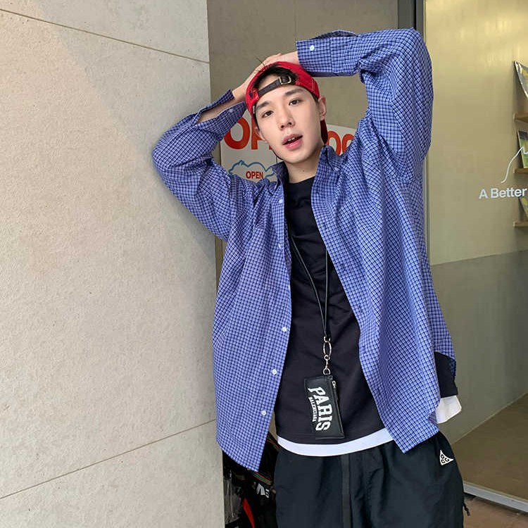 American Retro Blue Plaid Long Sleeve Shirt
