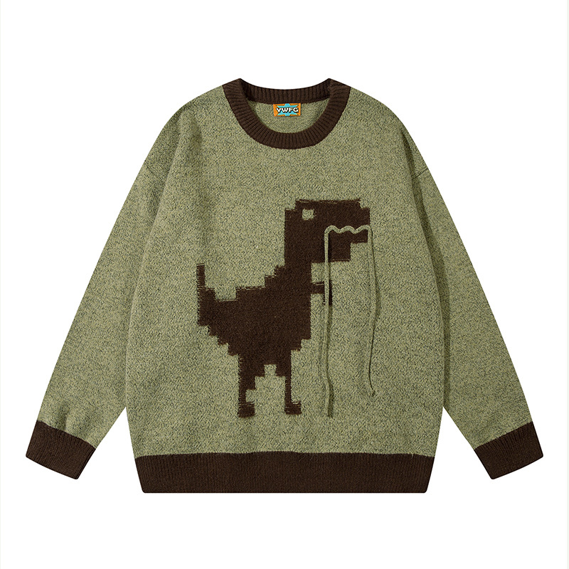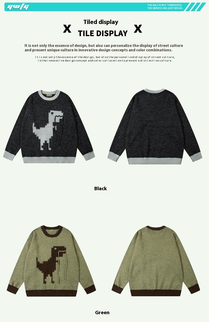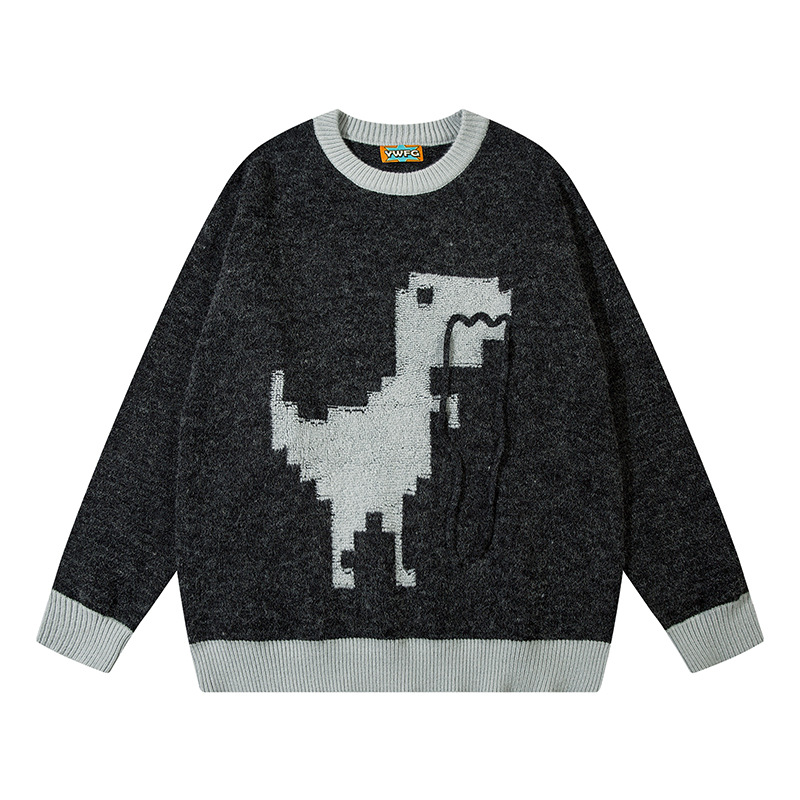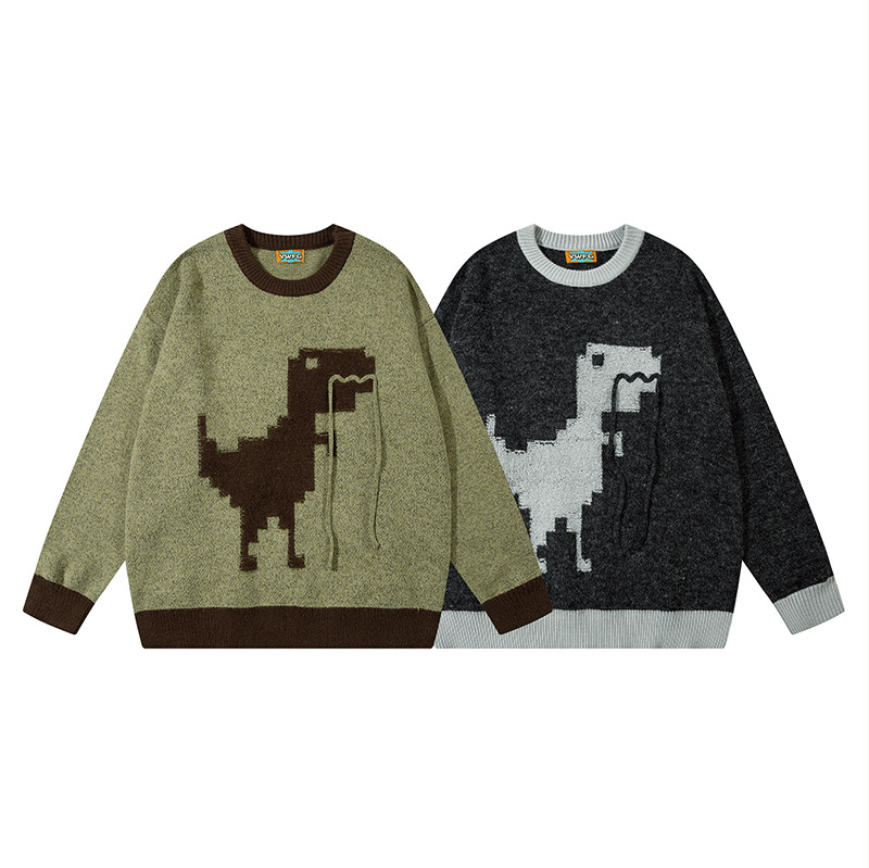 American Retro Cartoon Couple Round Neck Long Sleeve Sweater