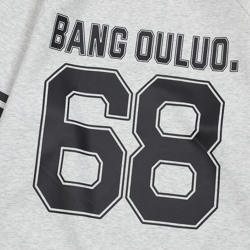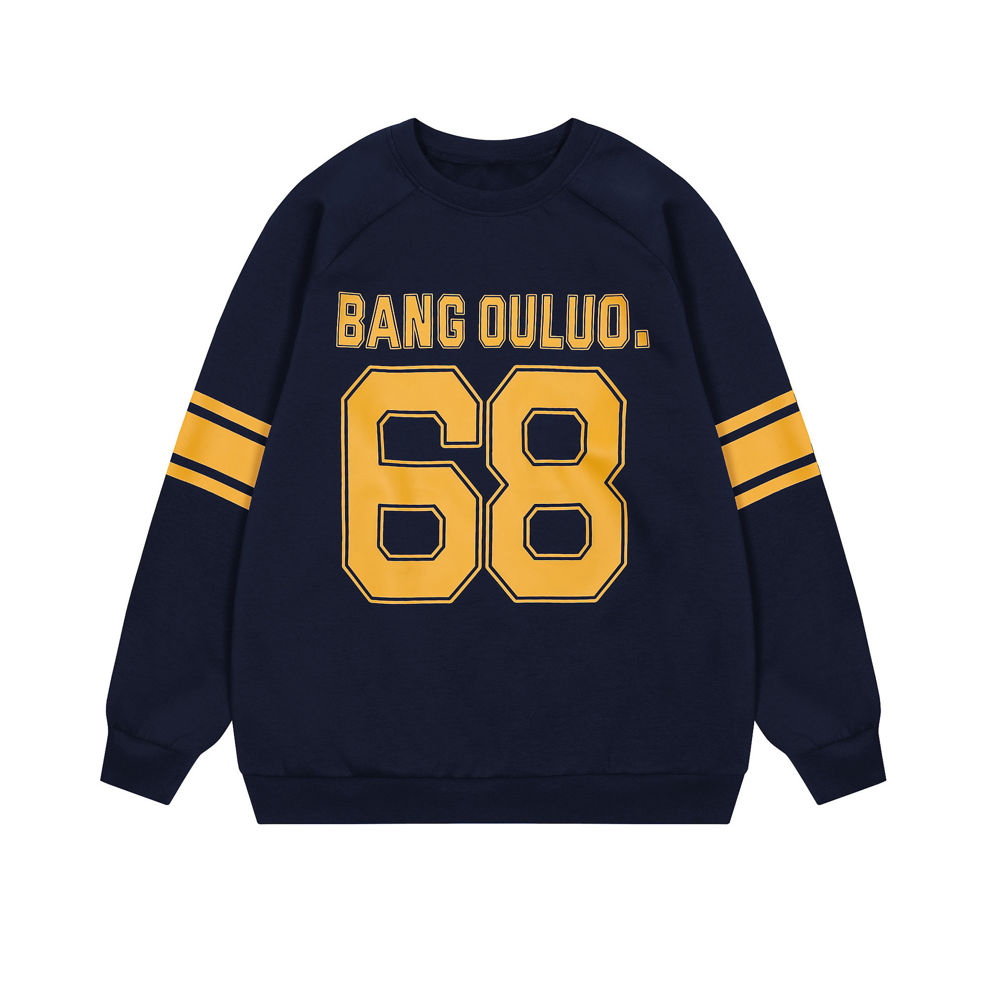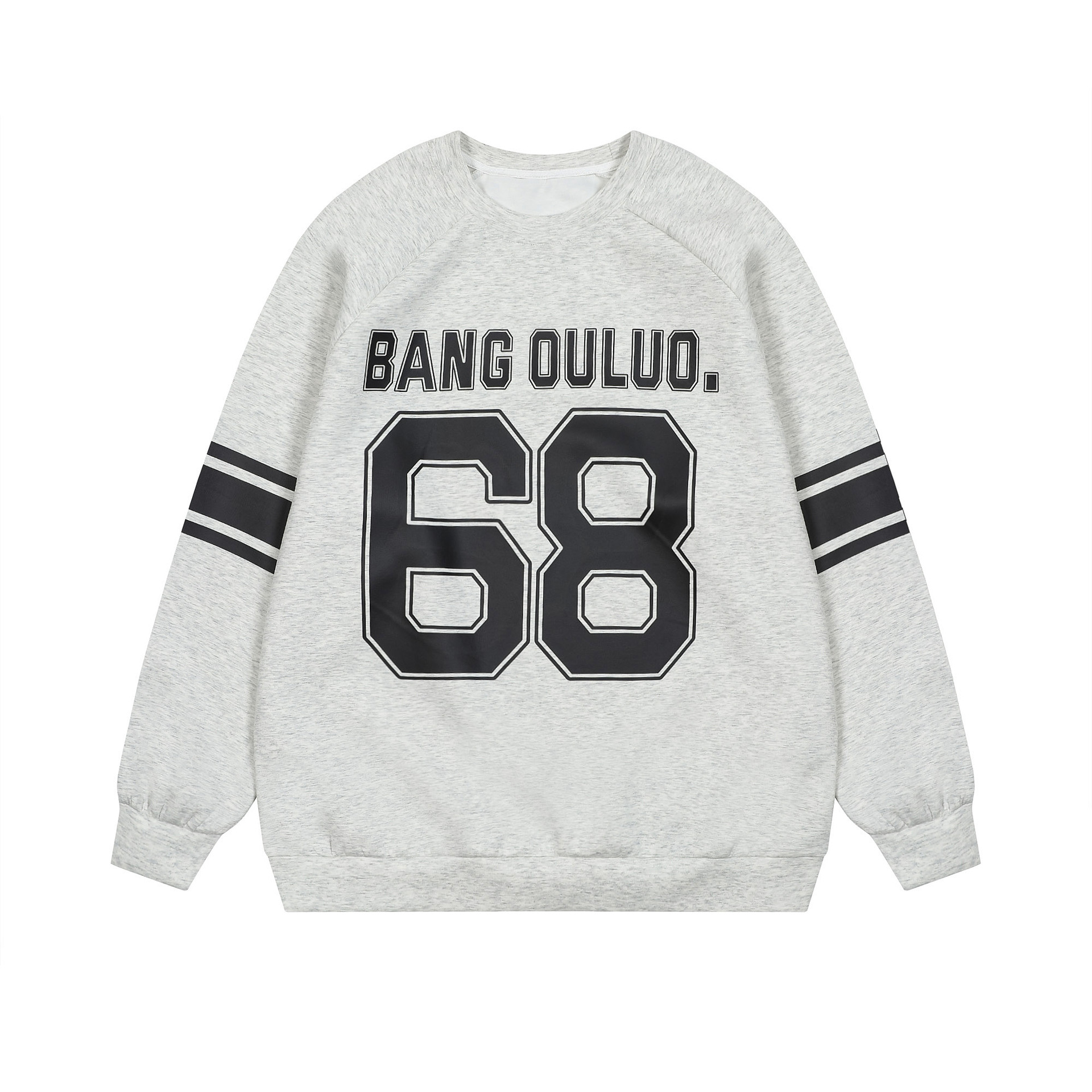 American Retro Contrast Color Number Printed Crew Neck Sweatshirt Men