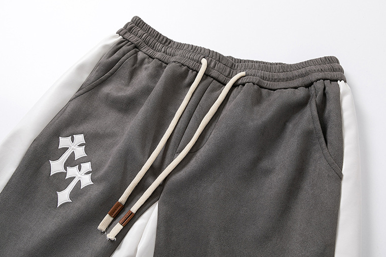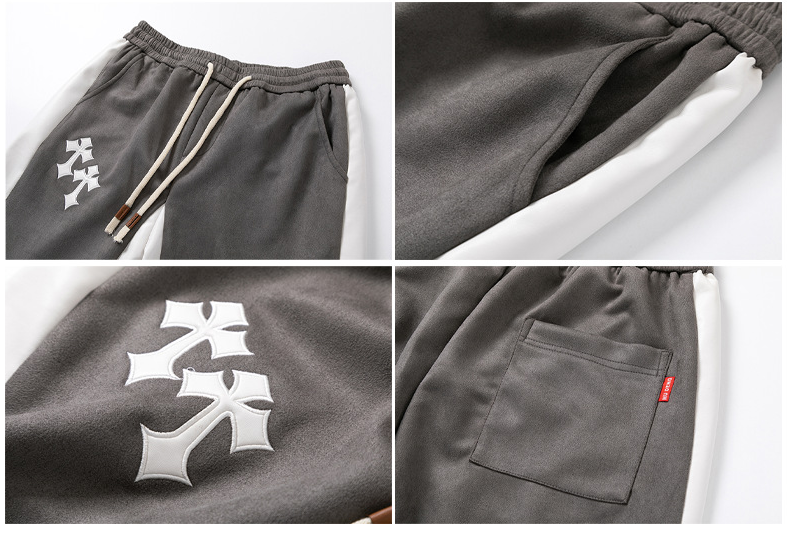 American Retro Cross Embroidery Suede Casual Trousers For Men