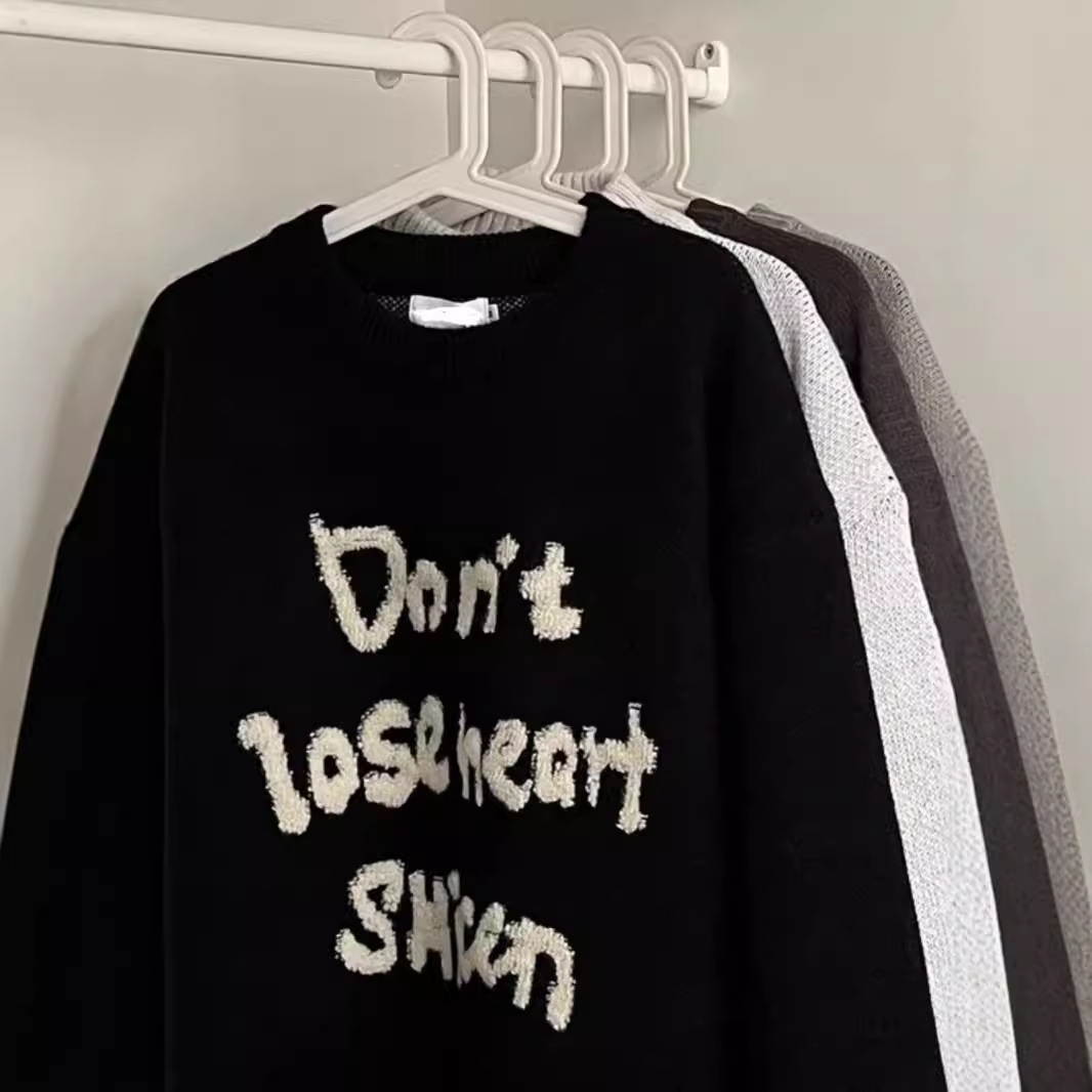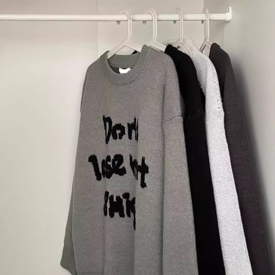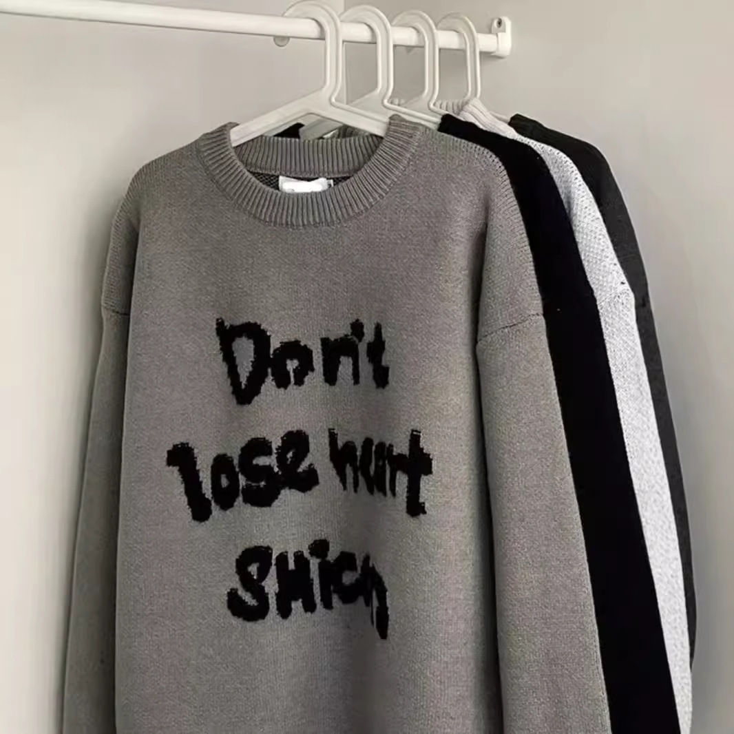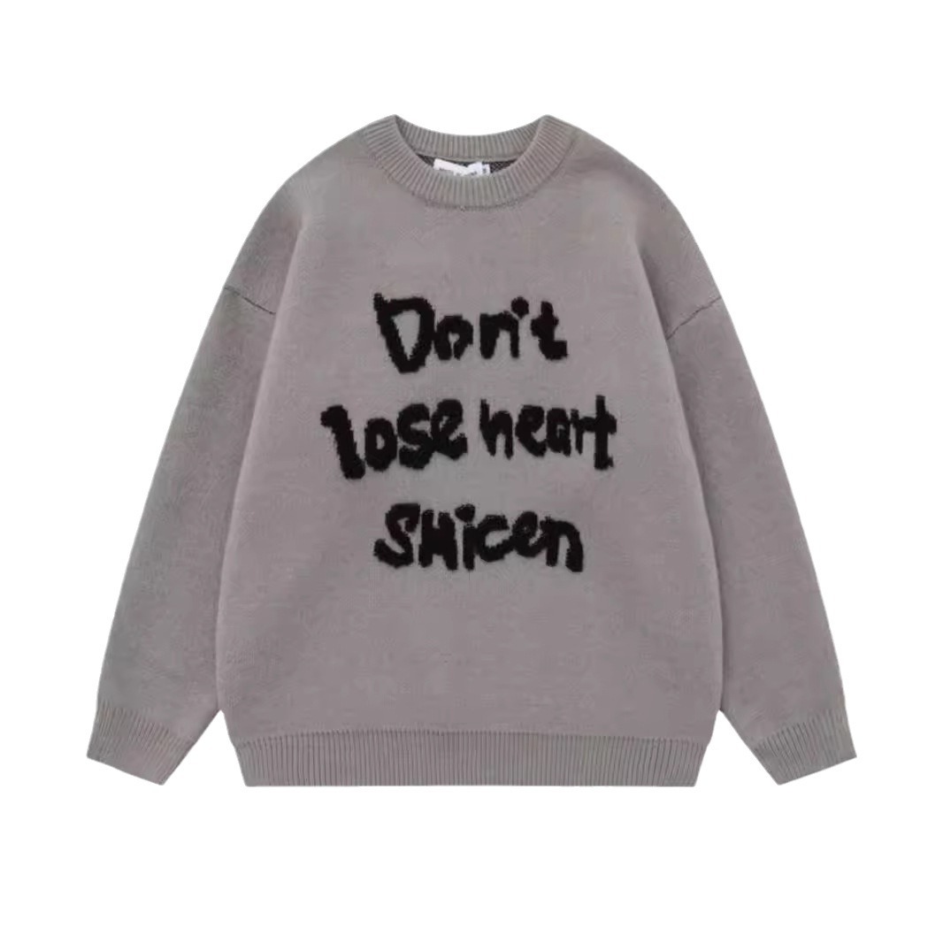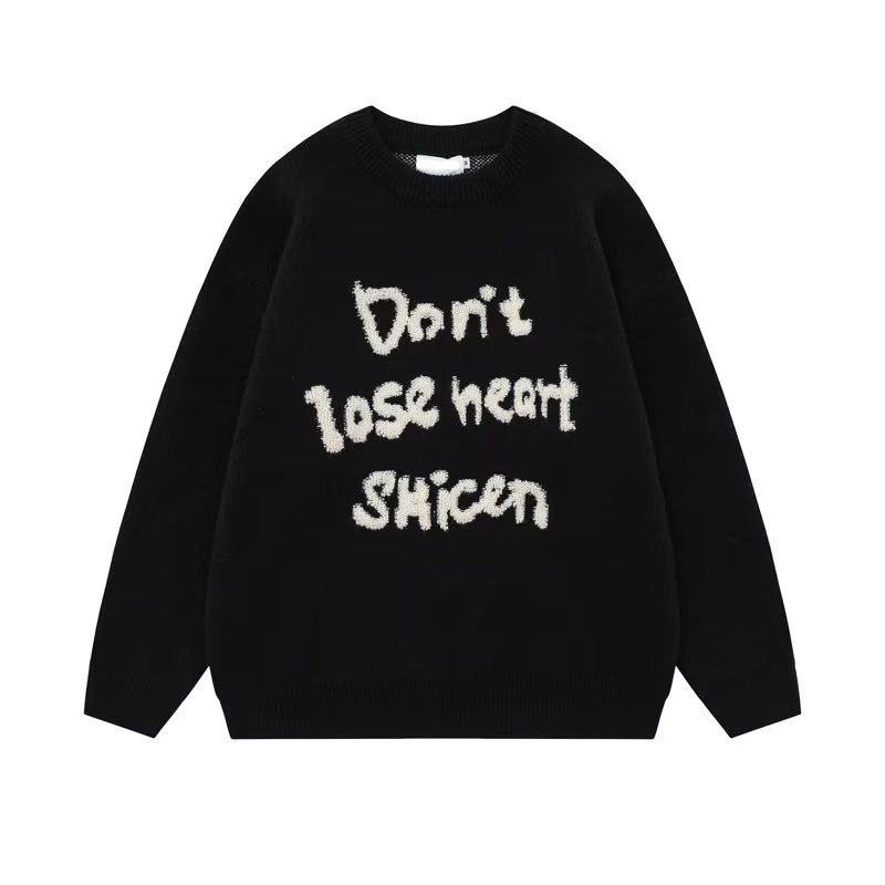 American Retro Design Letter Jacquard Round Neck Sweater For Men And Women
