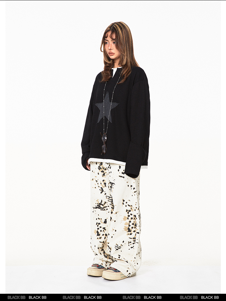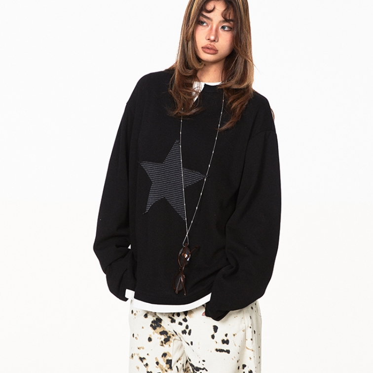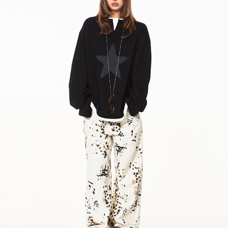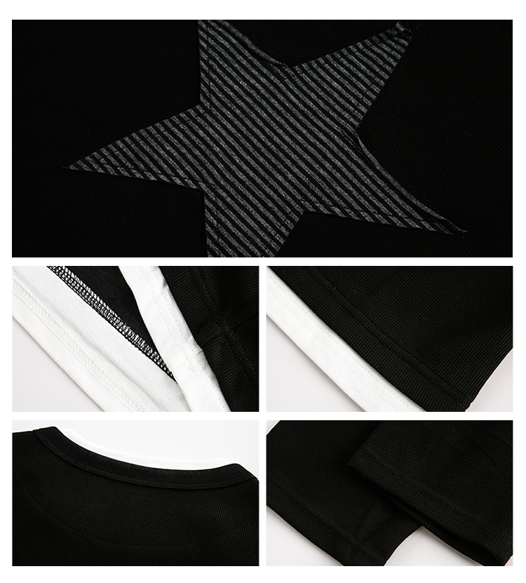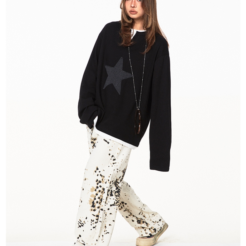 American Retro Fake Two-piece XINGX Patch Sweater