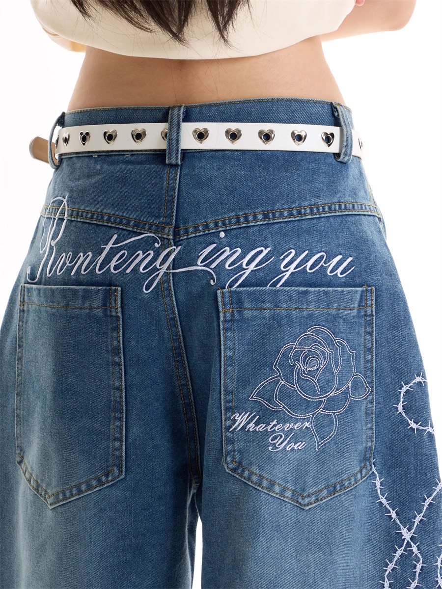 American Retro Hot Girl Embroidered Machete Jeans