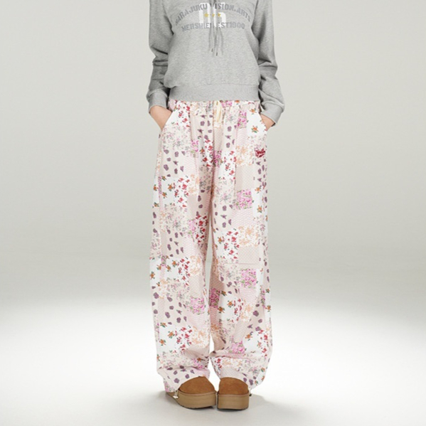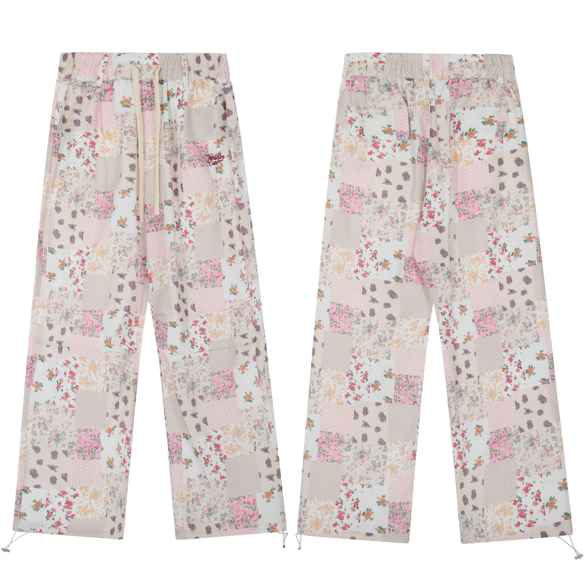 American Retro Hot Girl Floral Plaid Casual Trousers