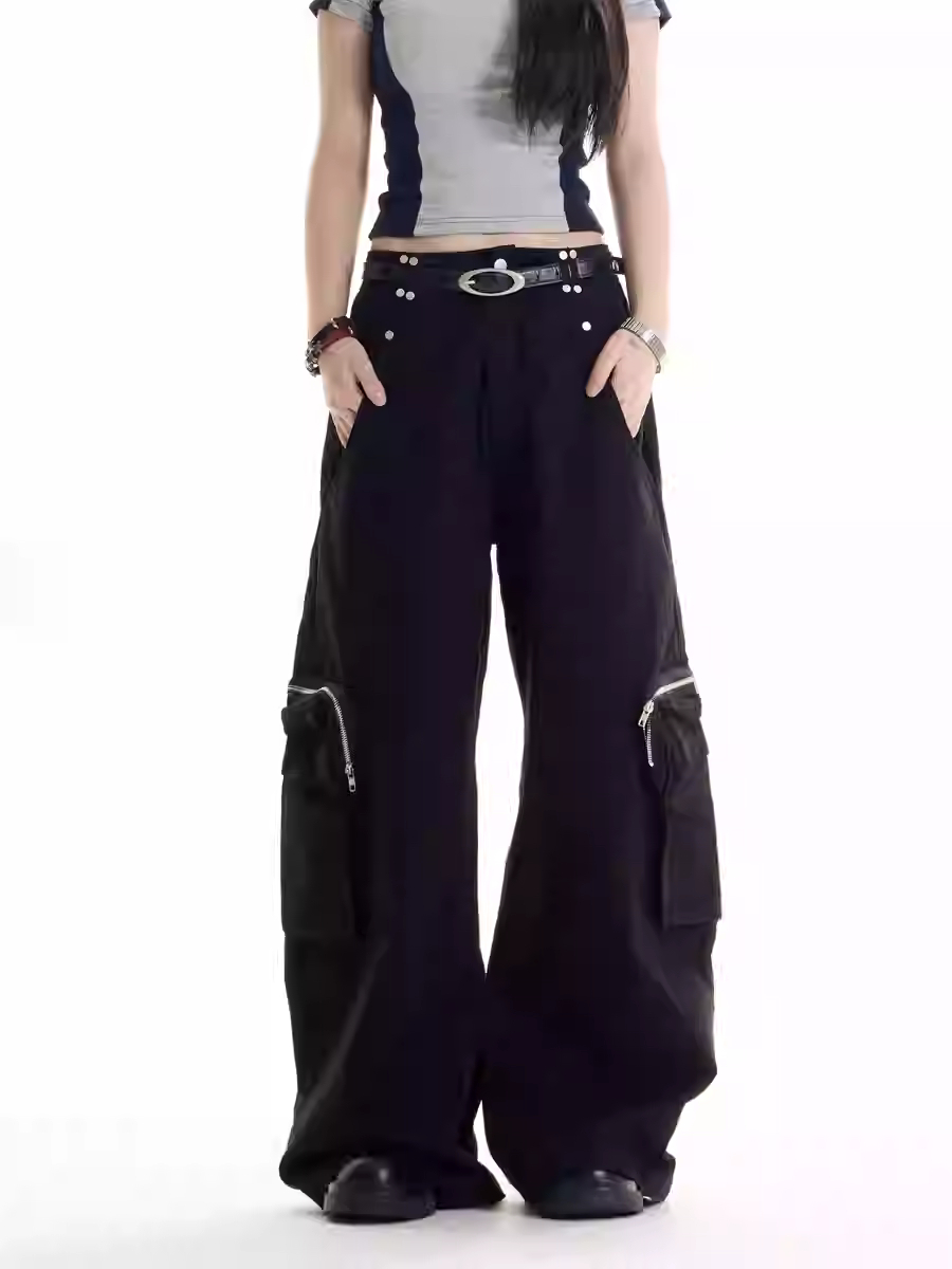 American Retro Hot Girl Style Multi-pocket Cargo Pants