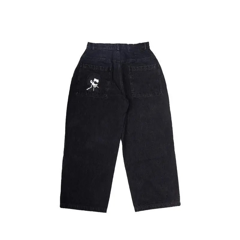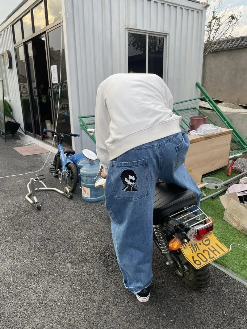 American Retro Large Embroidered Wide Leg Loose Washed Jeans
