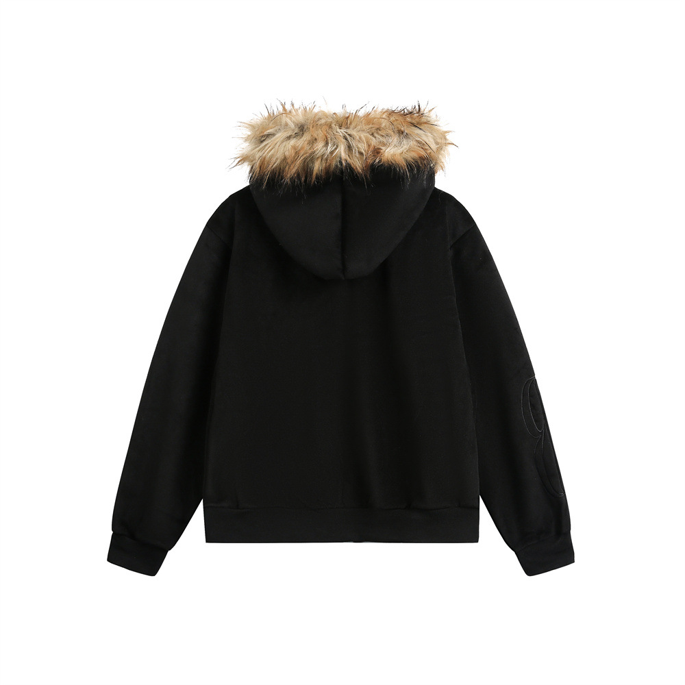 American Retro Men's Sweater Hooded Fur Collar Cardigan