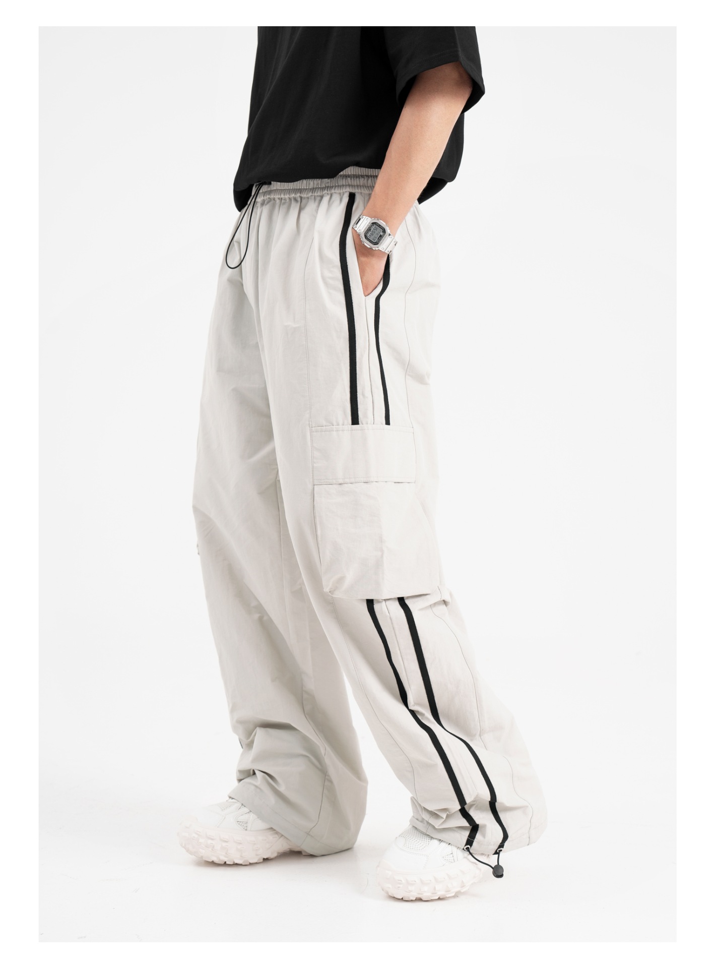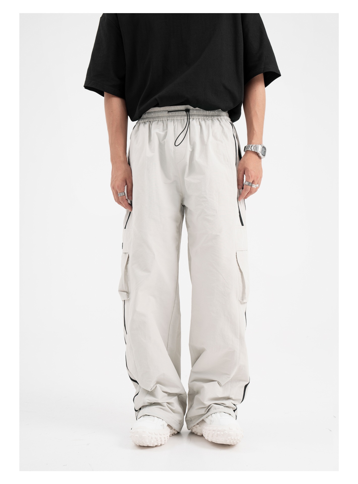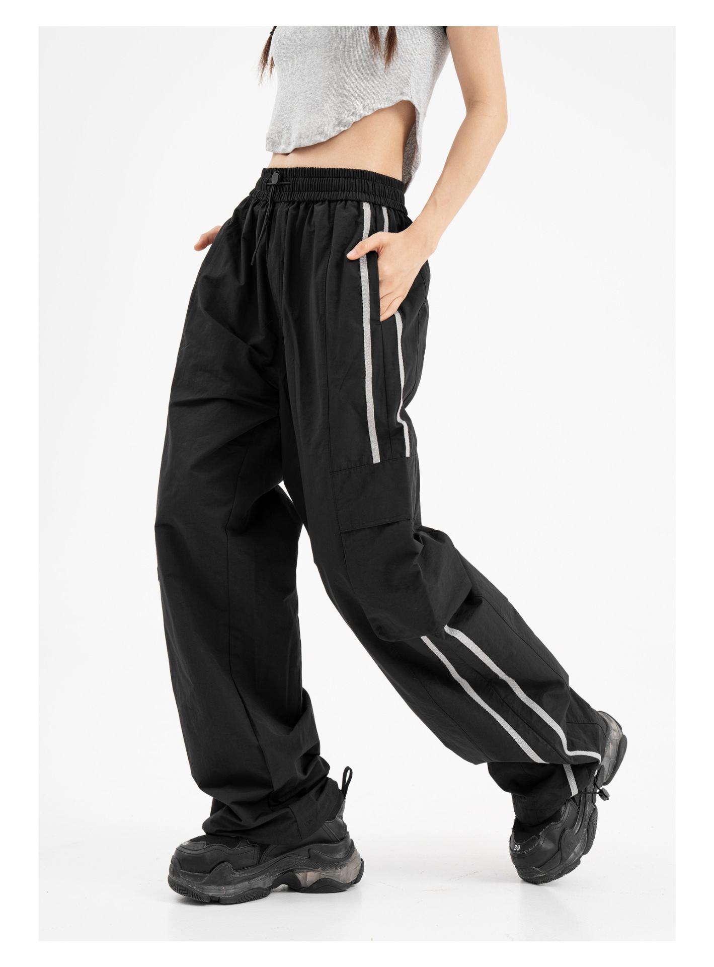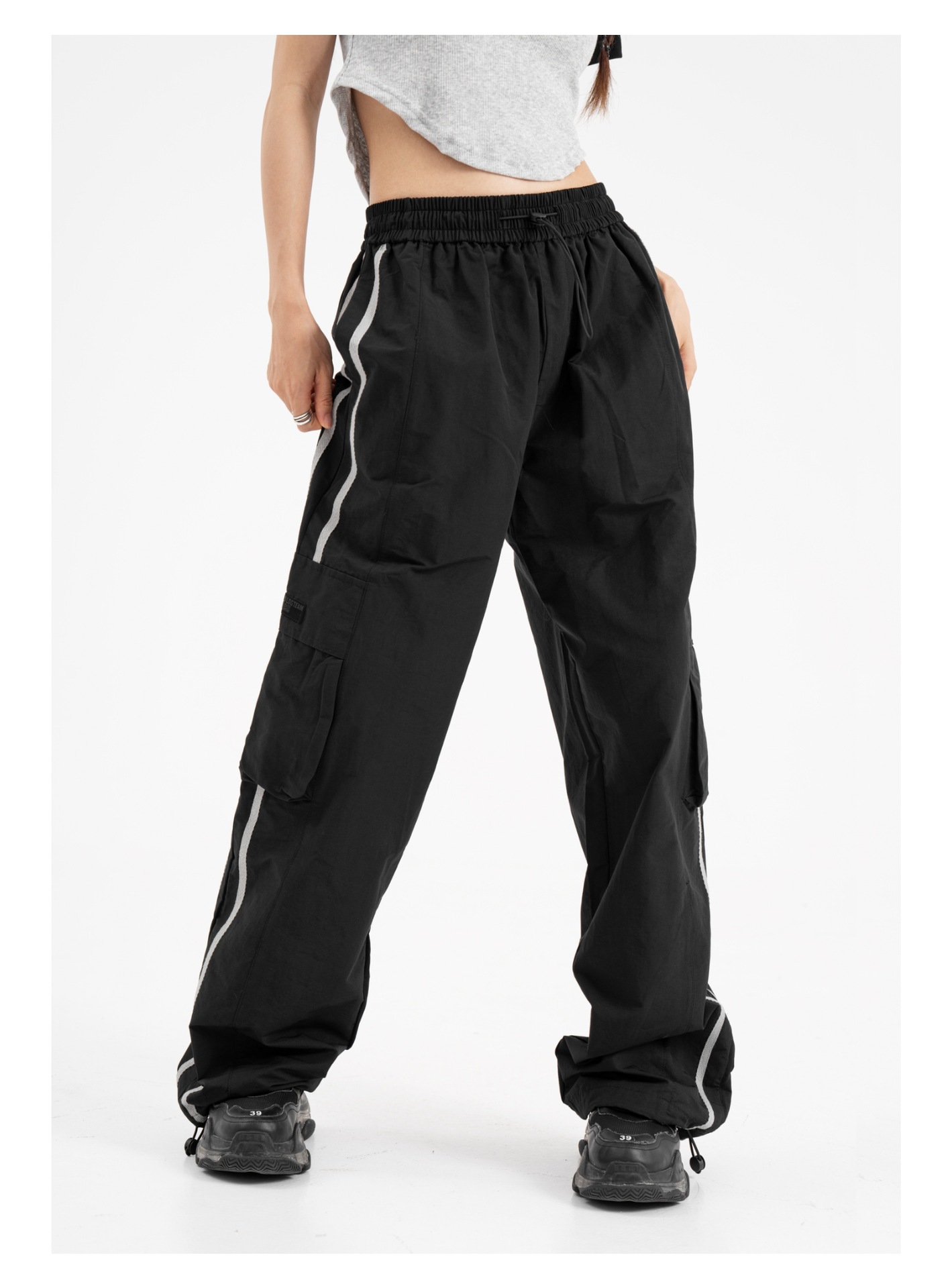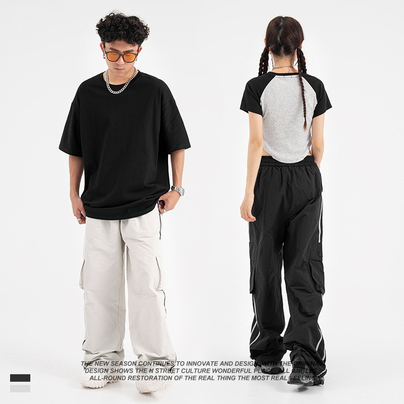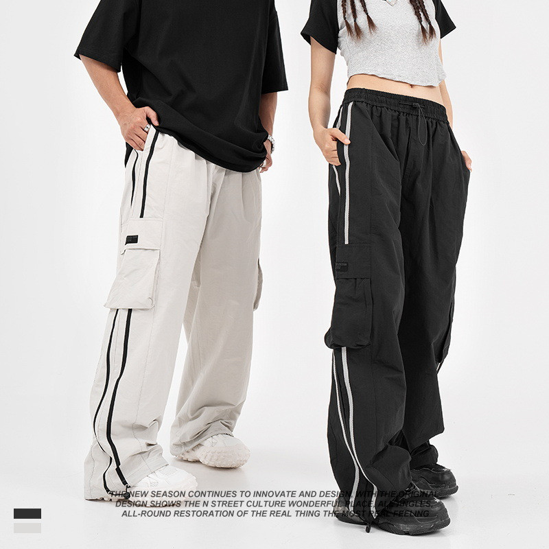 American Retro Piano Bag Stitching Casual Straight Trousers