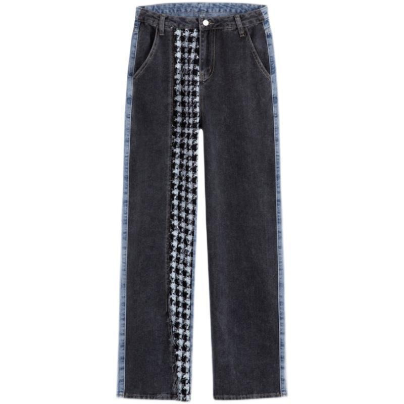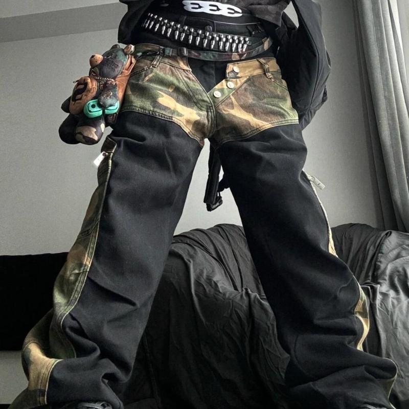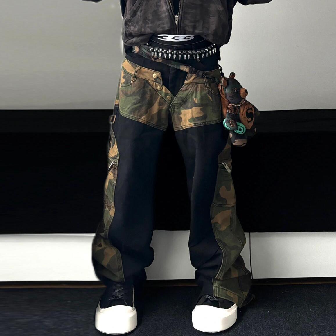 American Retro Plus Size Washed Camouflage Stitching Jeans
