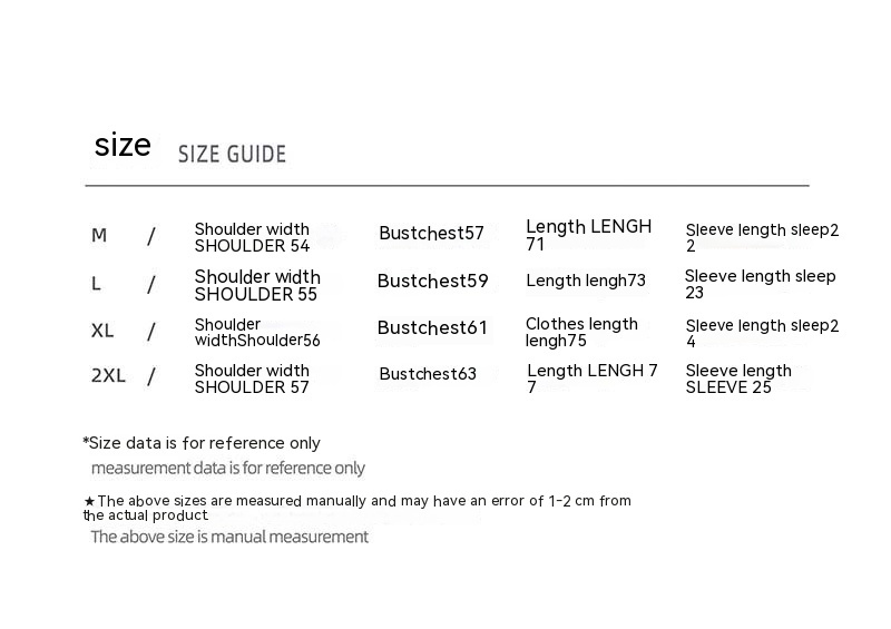 1. Asian sizes are 1 to 2 sizes smaller than European and American people. Choose the larger size if your size between two sizes. Please allow 2-3cm differences due to manual measurement. 2. Please check the size chart carefully before you buy the item, if you don't know how to choose size, please contact our customer service. 3.As you know, the different computers display colors differently, the color of the actual item may vary slightly from the following images.