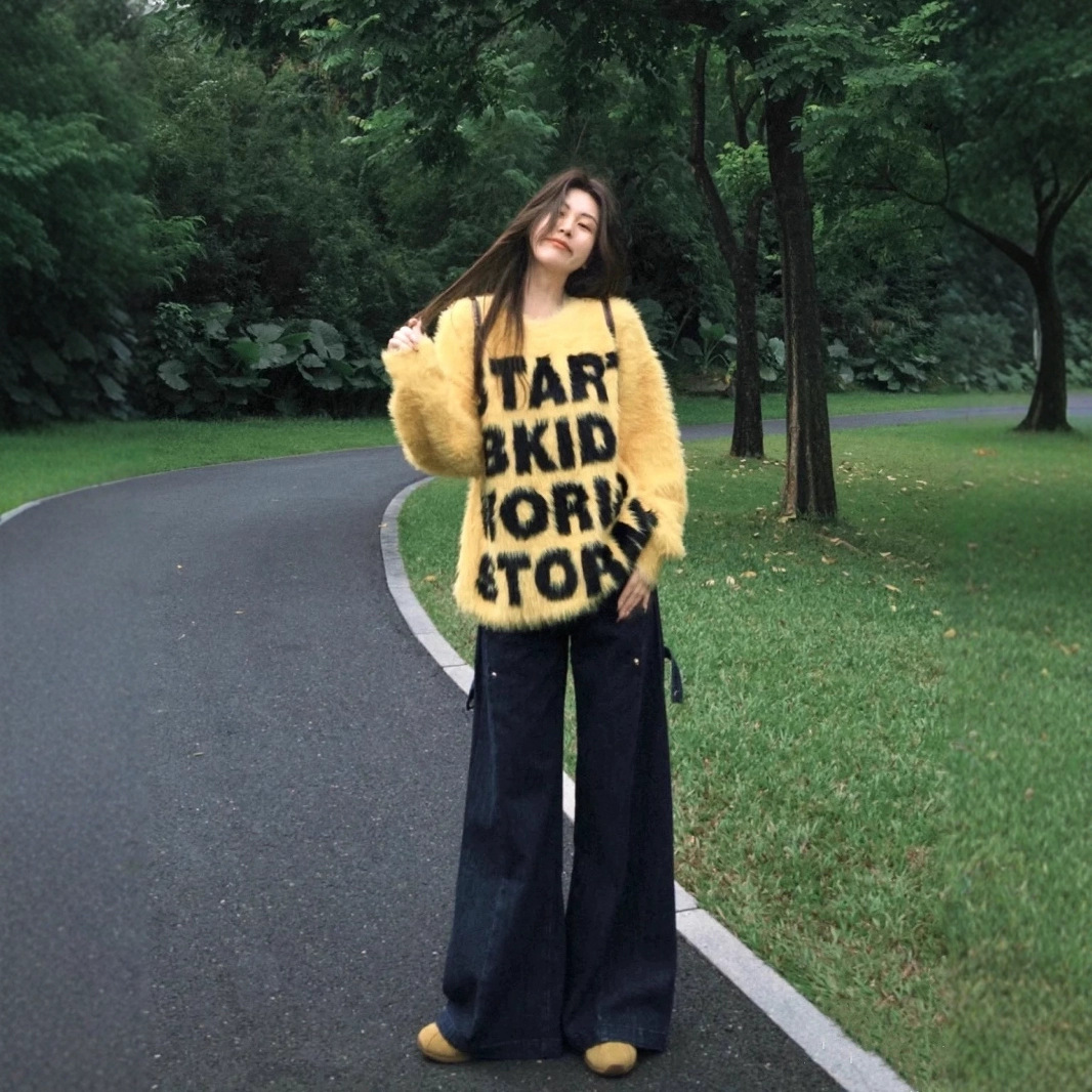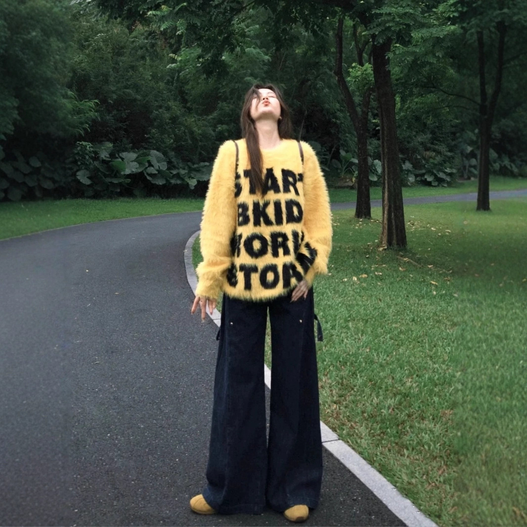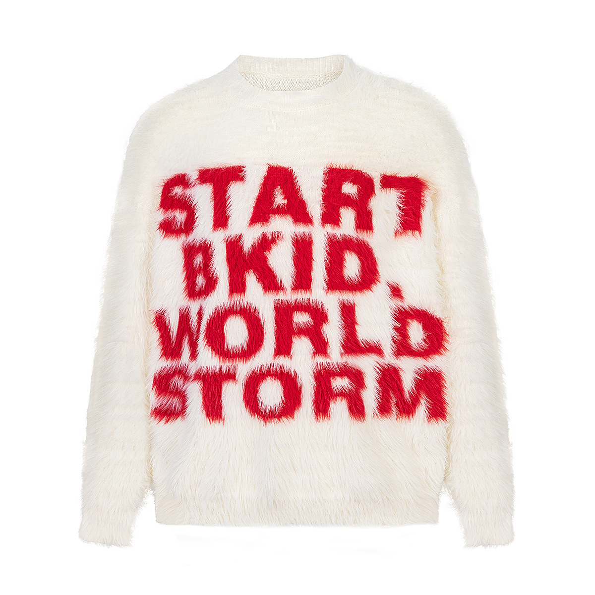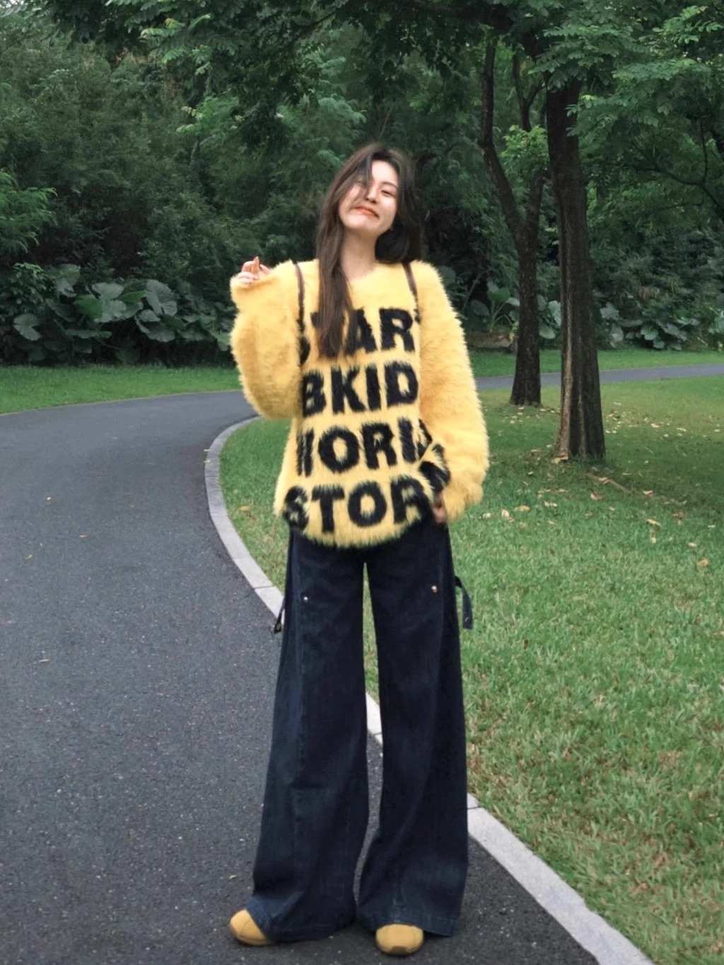 American Round Neck Mink Letter Sweater Fall Winter Couples Trendy Brand Niche
