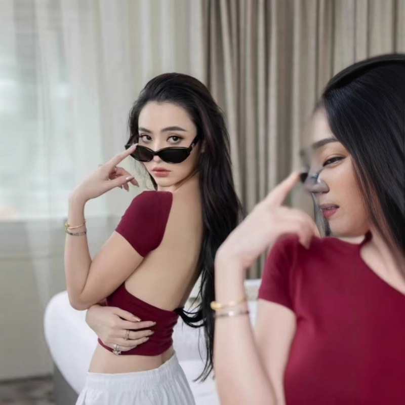 American Sexy Backless Short Sleeve T-shirt Women