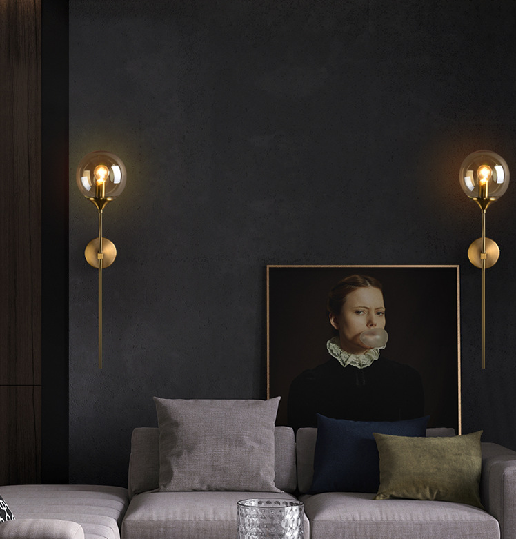 American Simple Glass Shade Bronze Metal Wall Lamp Hotel Villa Restaurant Aisle Staircase Corridor Wall Lamp