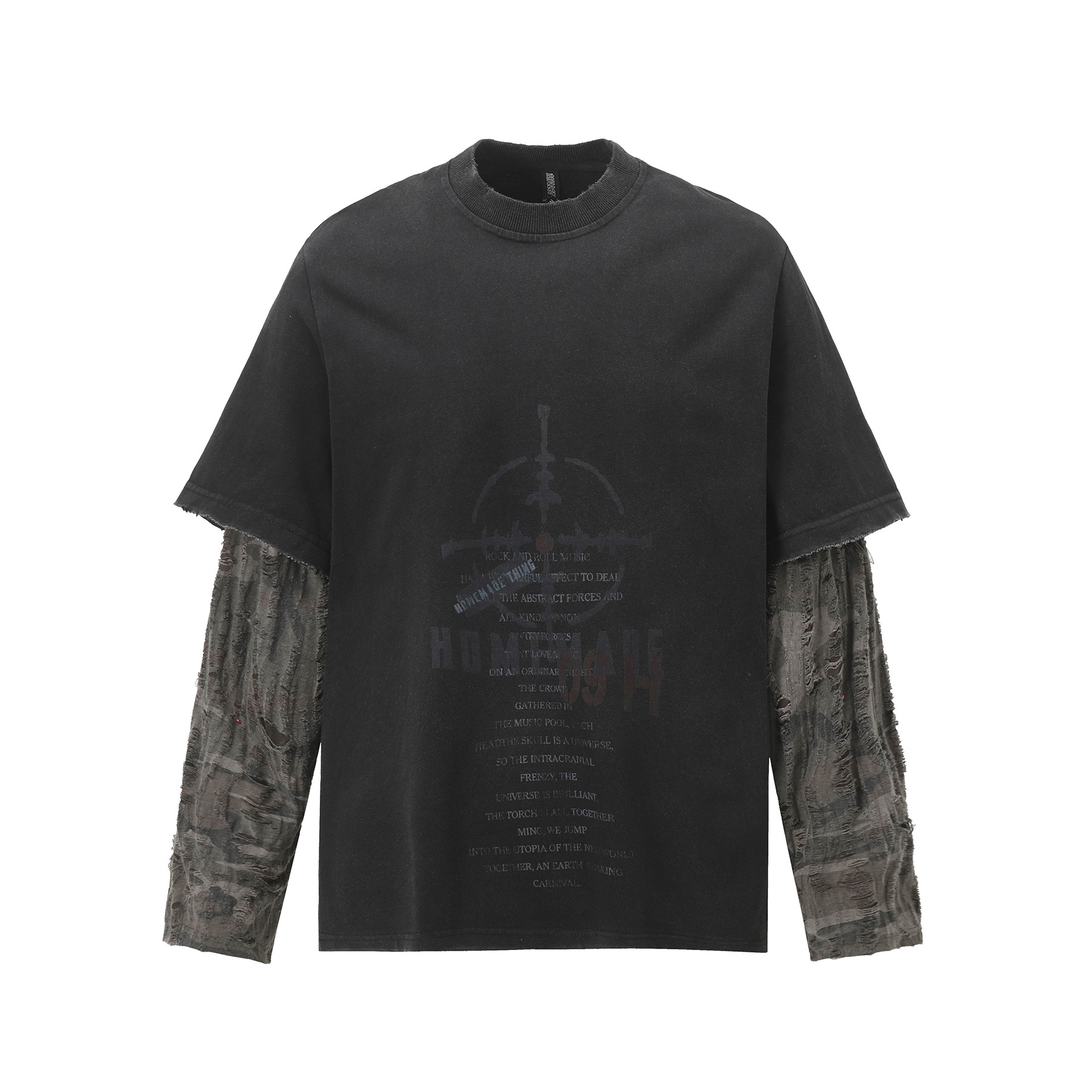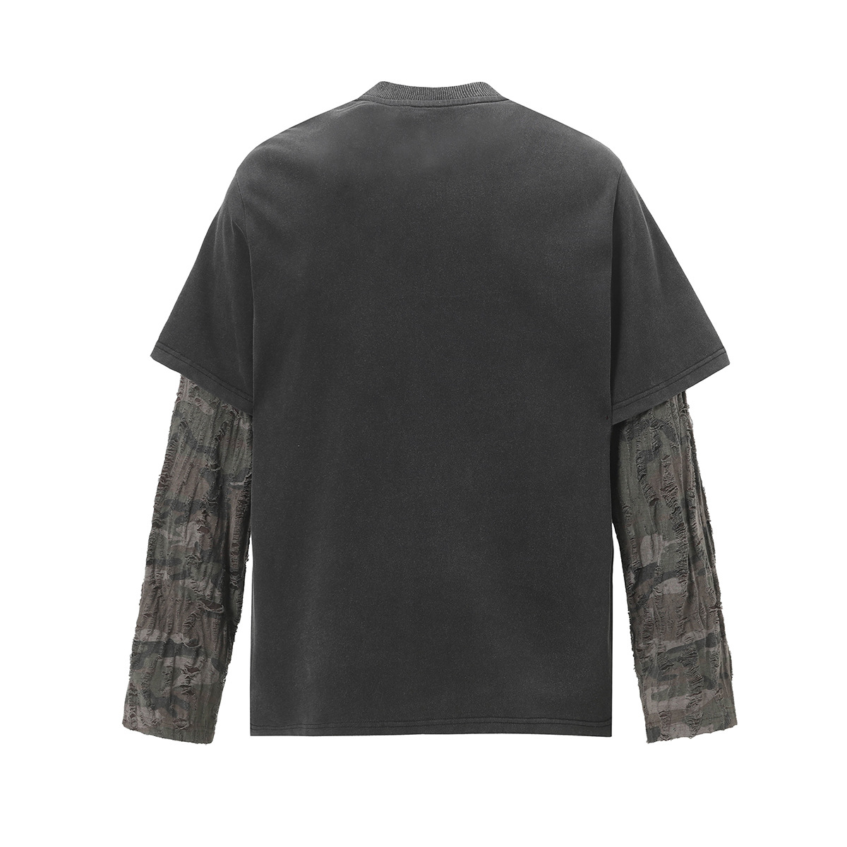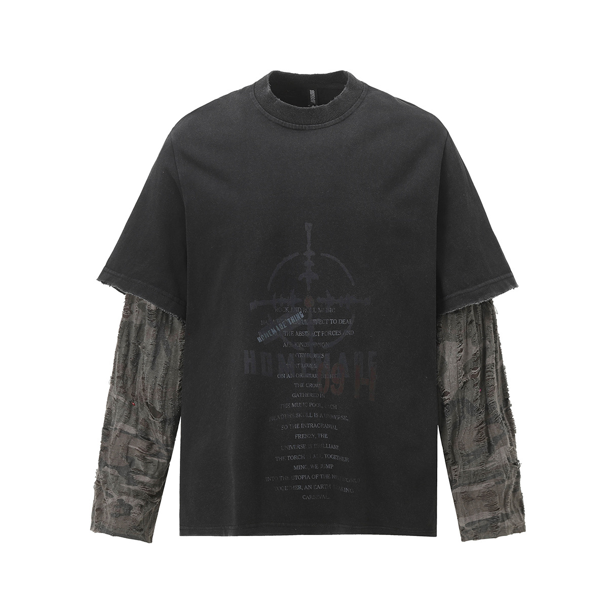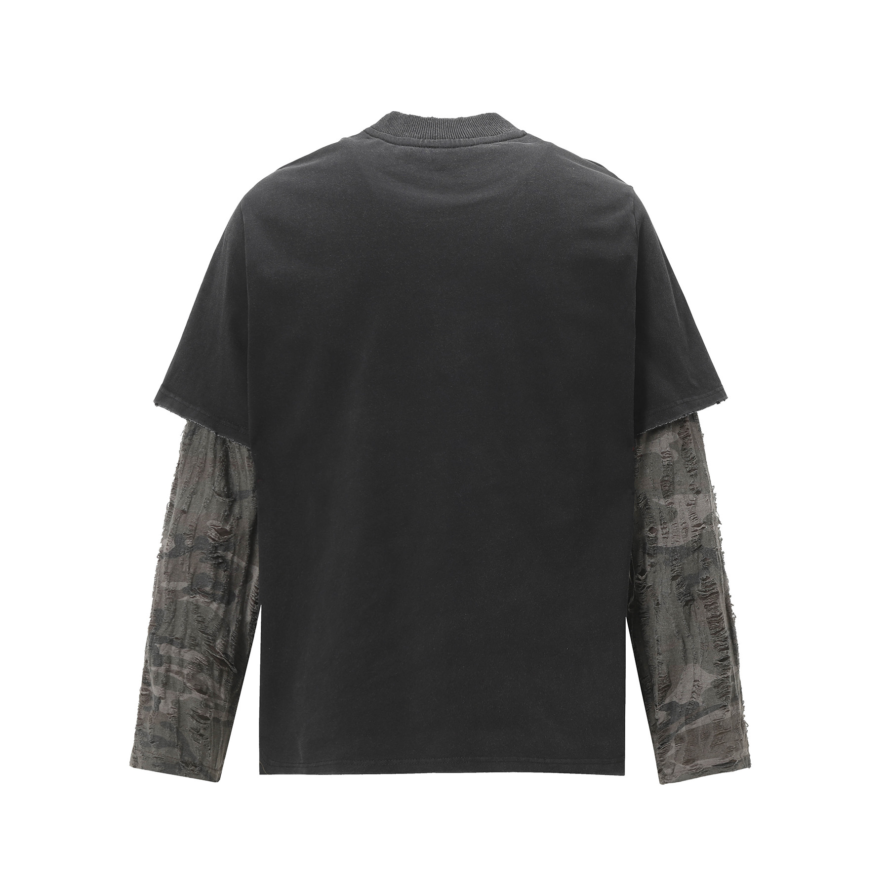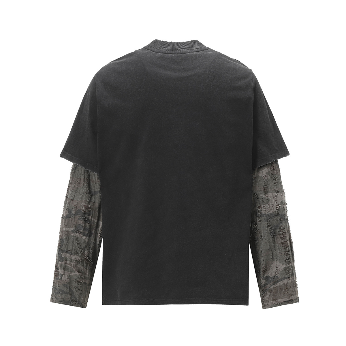 American Street Fashion Brand Fake Two Wash Damaged Erosion Washed Long Sleeve