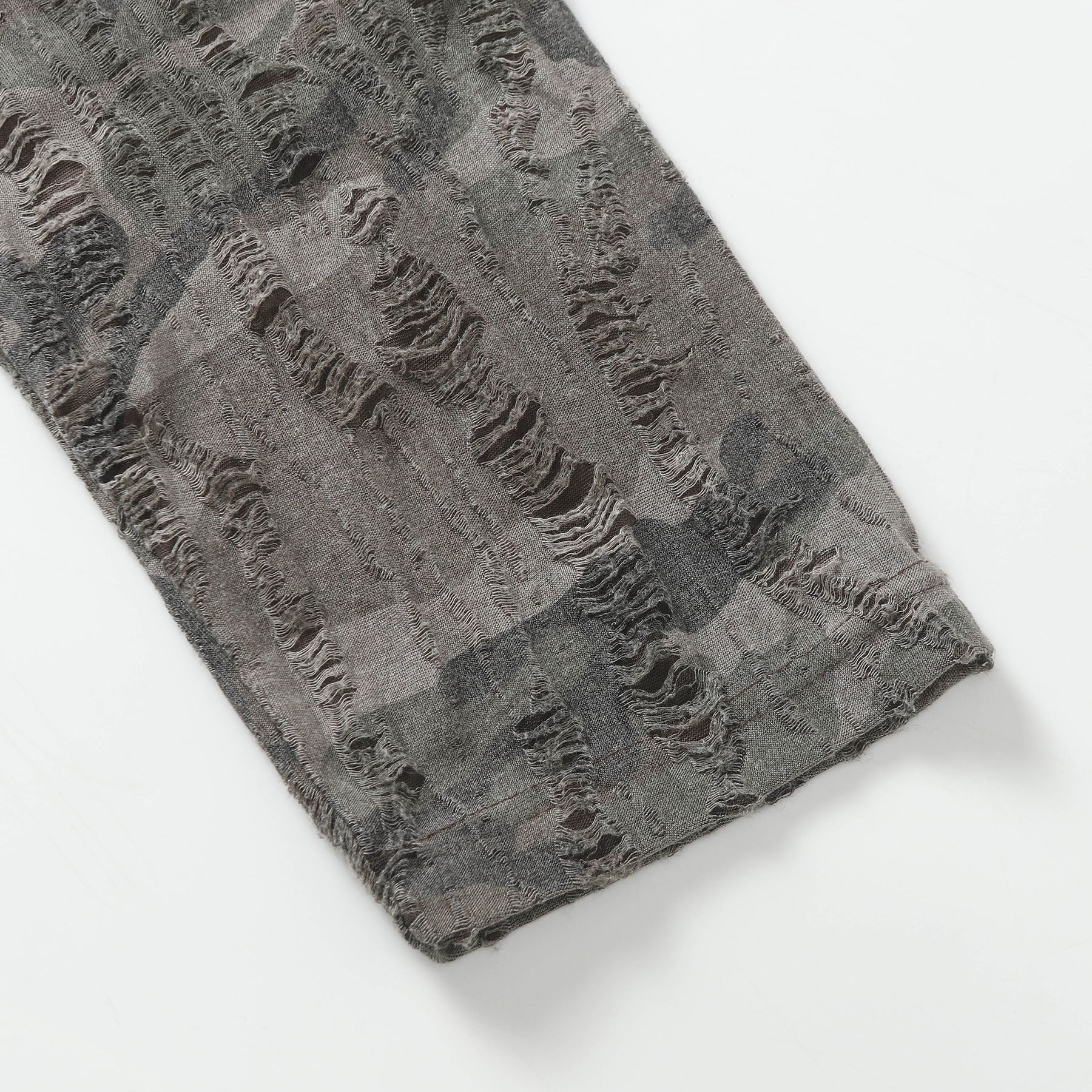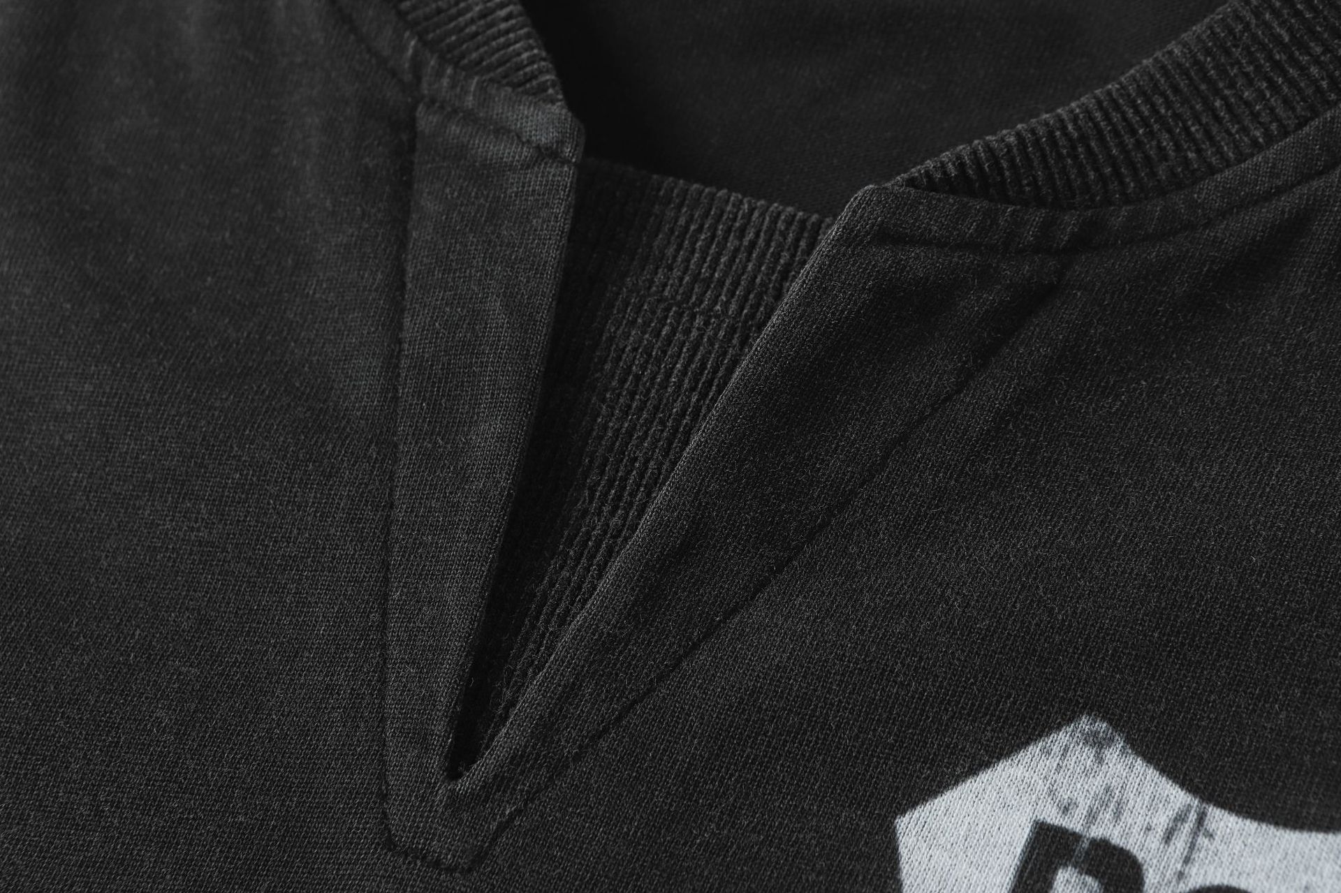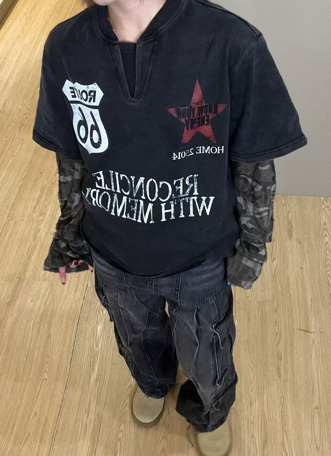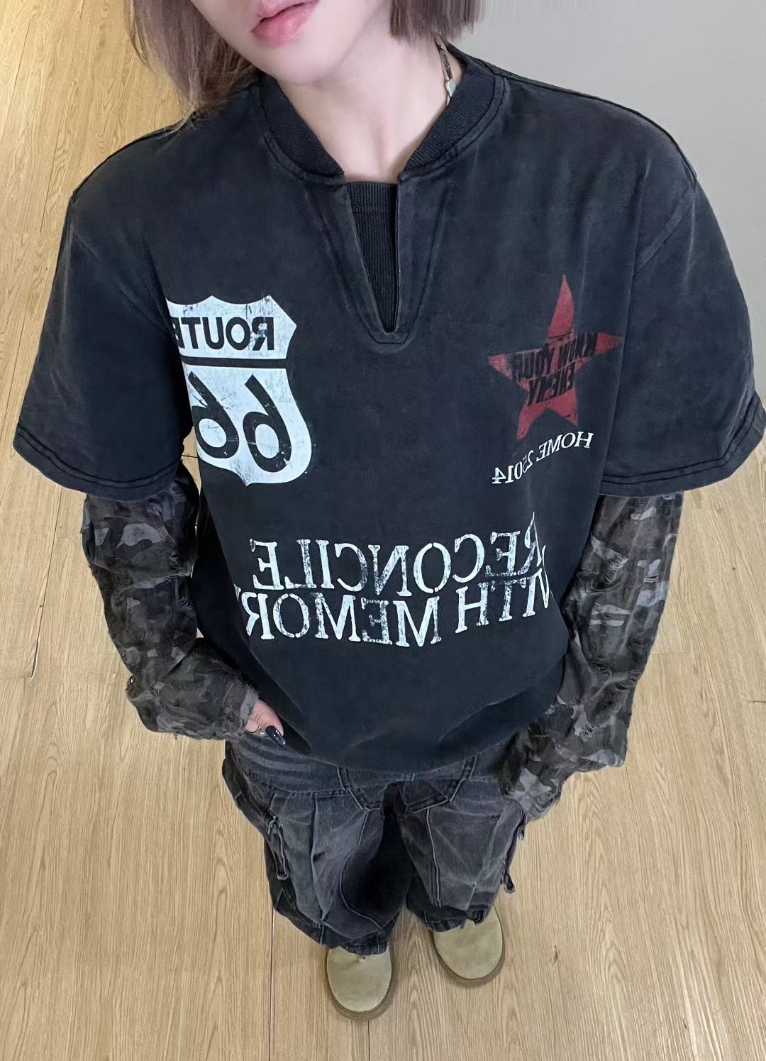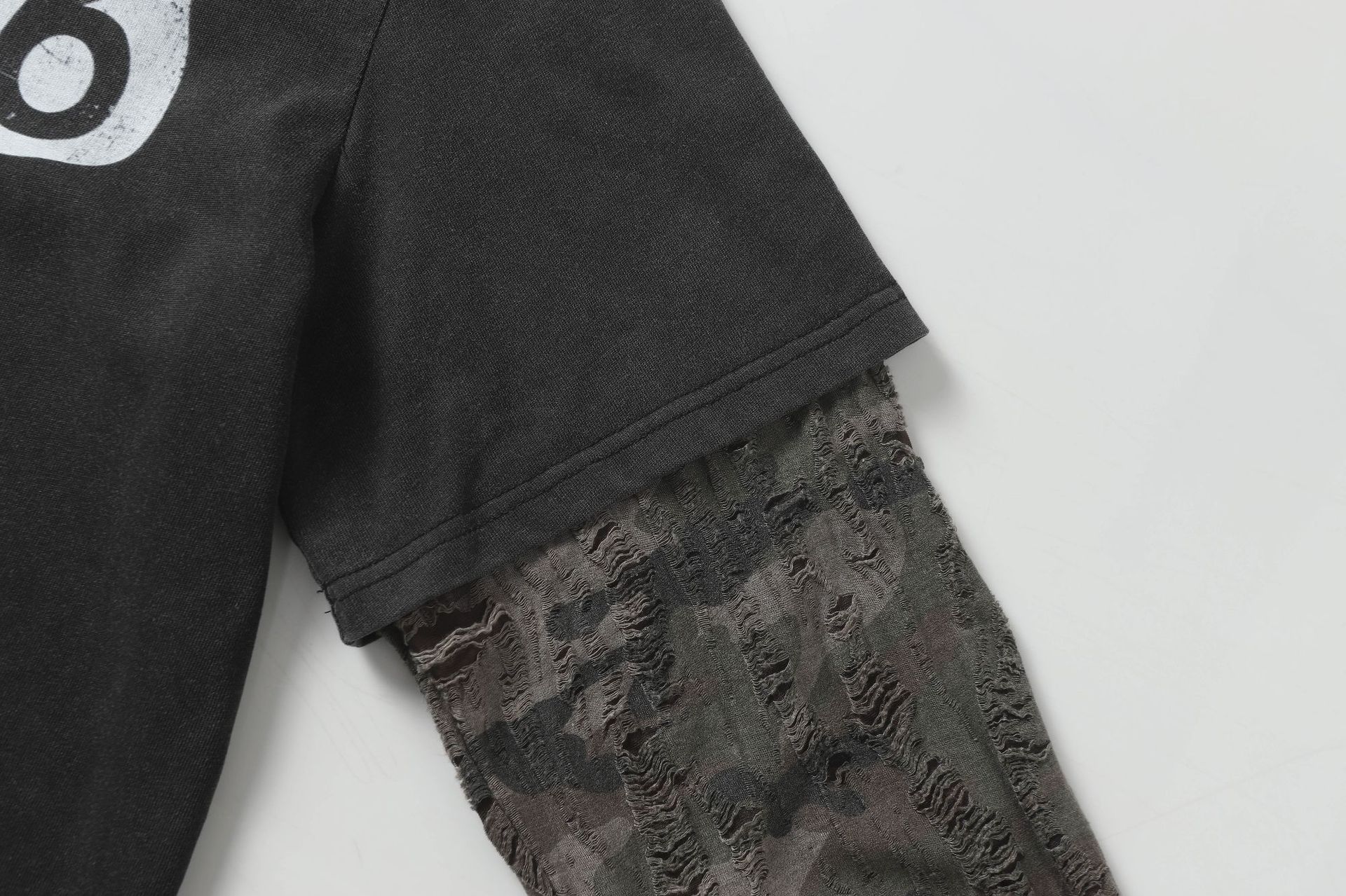 American Street Fashion Brand Fake Two Wash Damaged Erosion Washed Long Sleeve