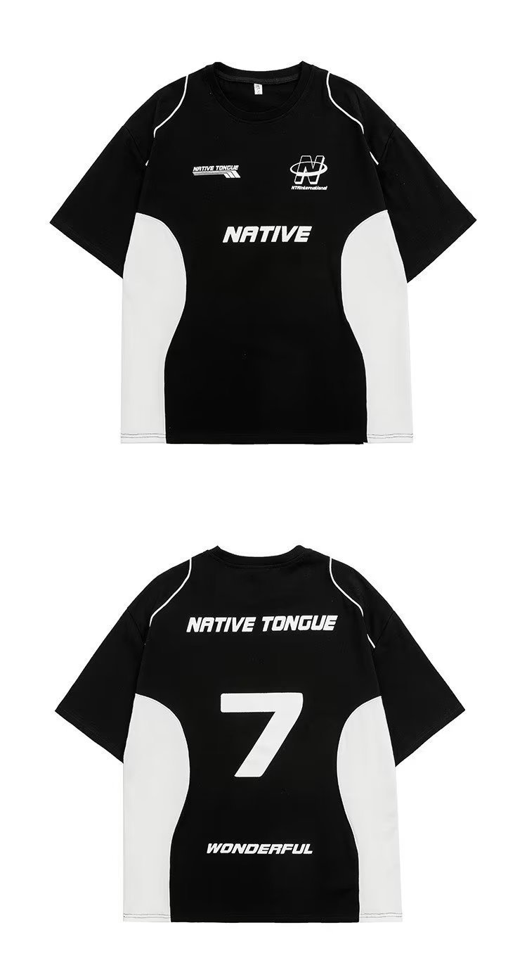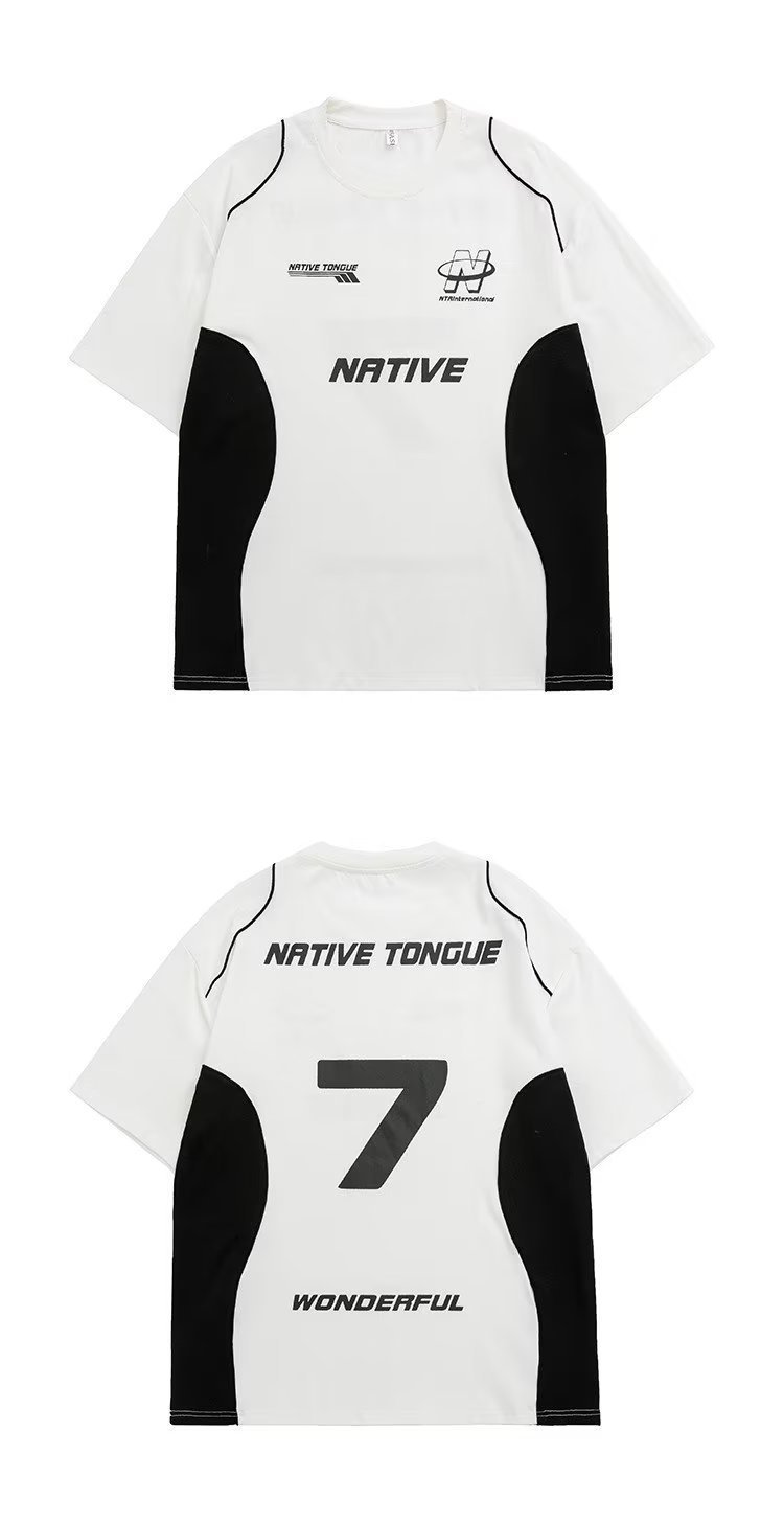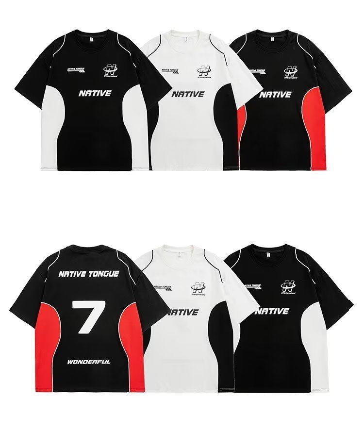 American Street Retro Color Matching Motorcycle Racing Short Sleeve