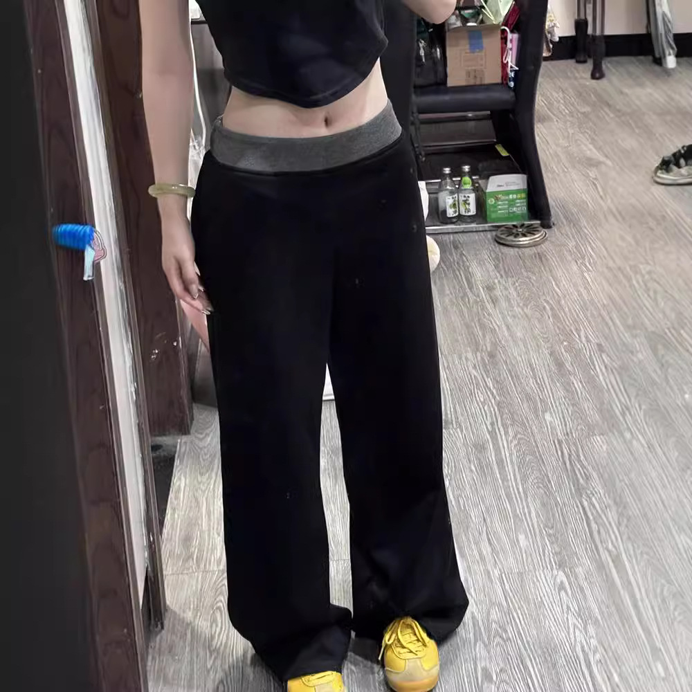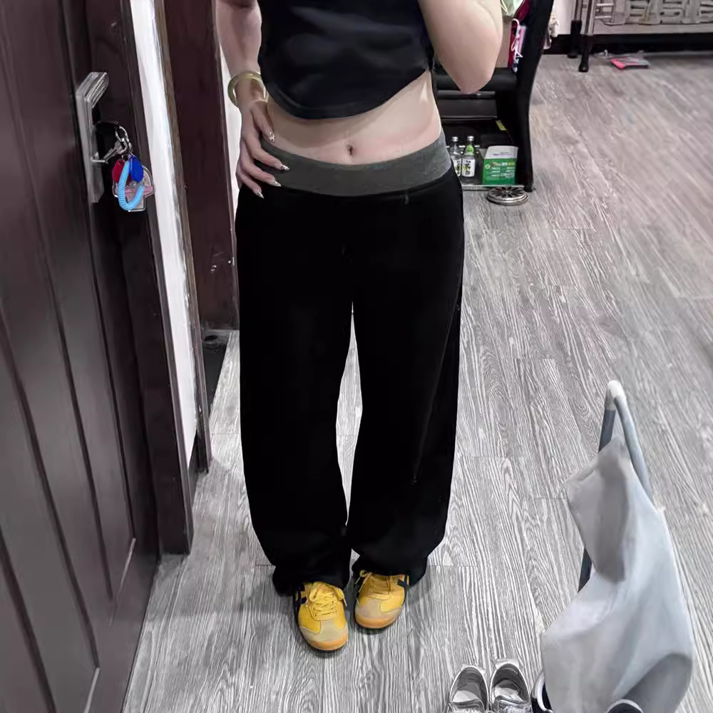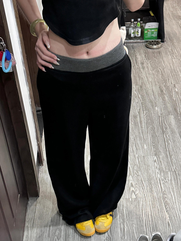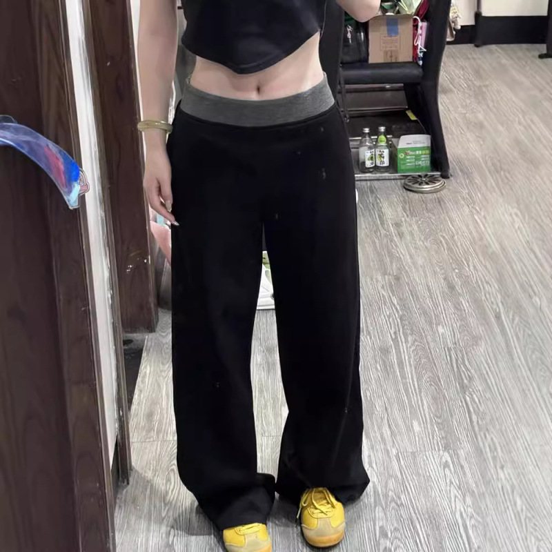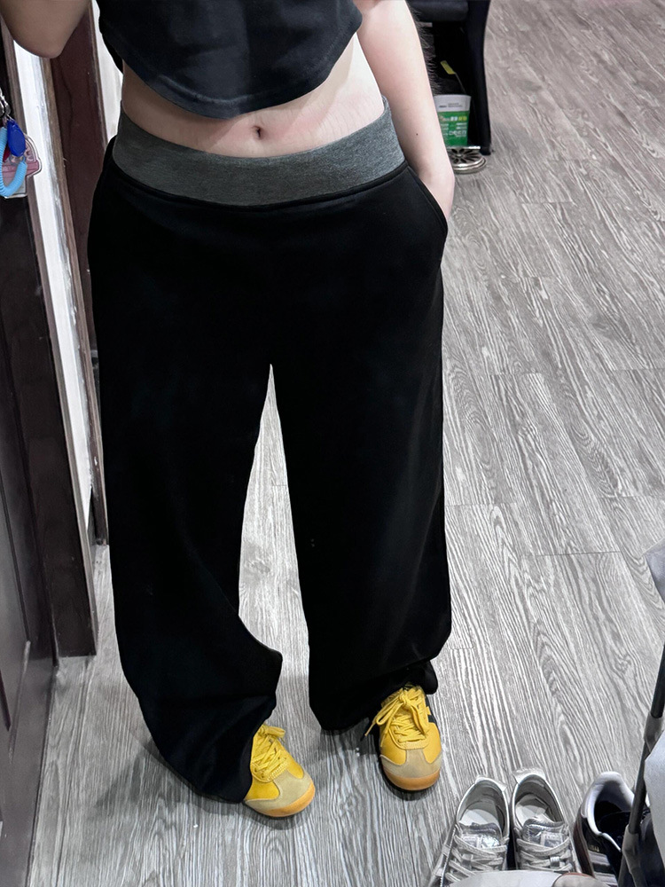 American Street Stitching Contrast Color Wide-leg Pants Sports Pants