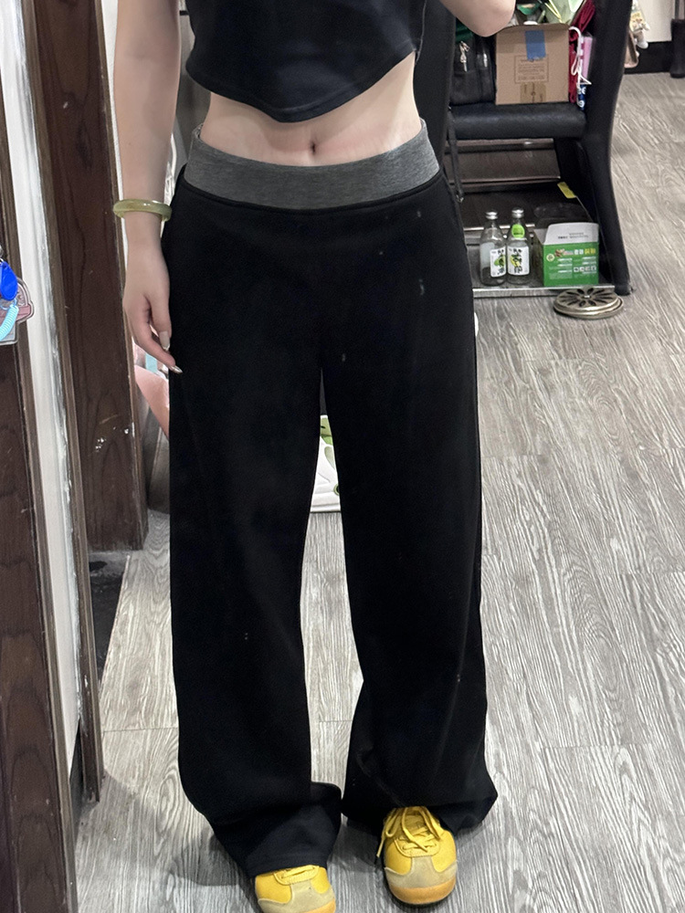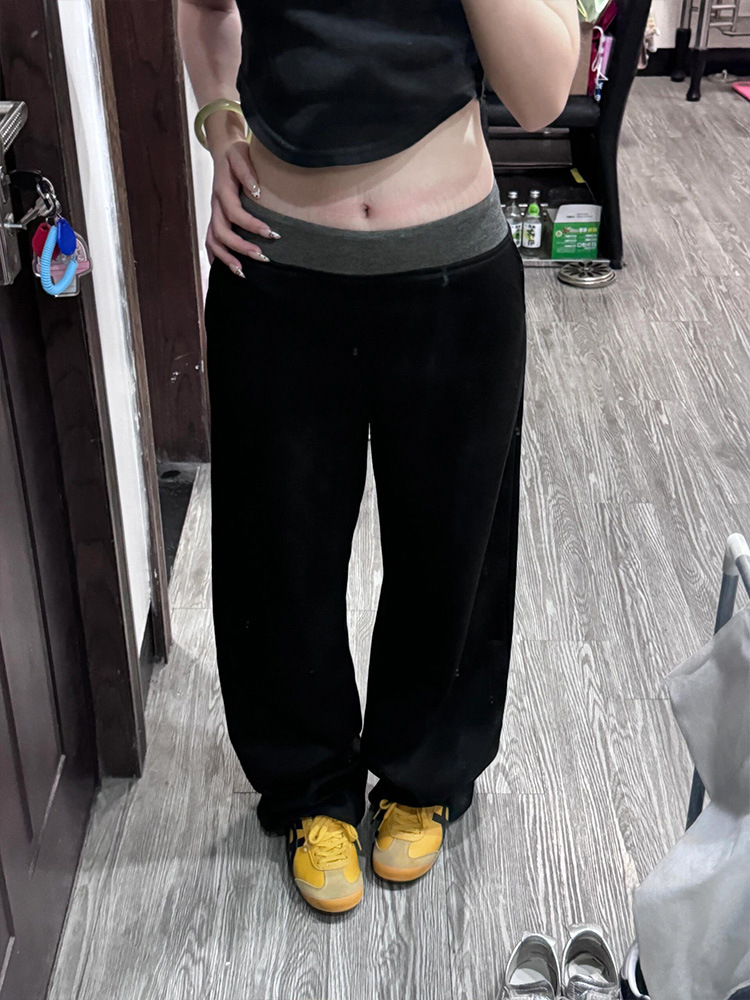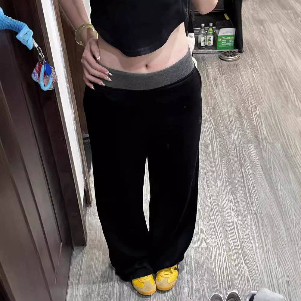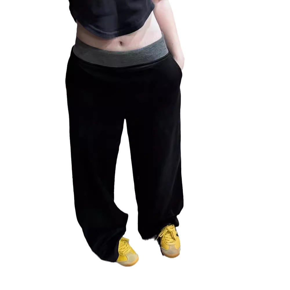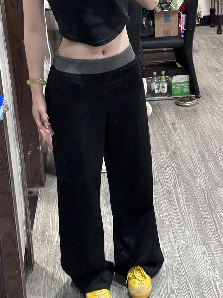 American Street Stitching Contrast Color Wide-leg Pants Sports Pants