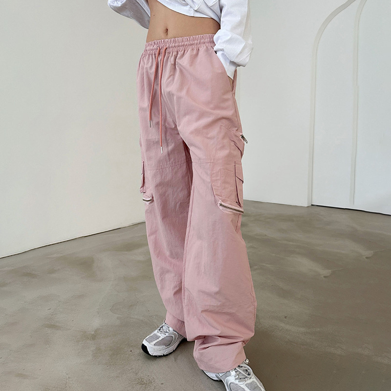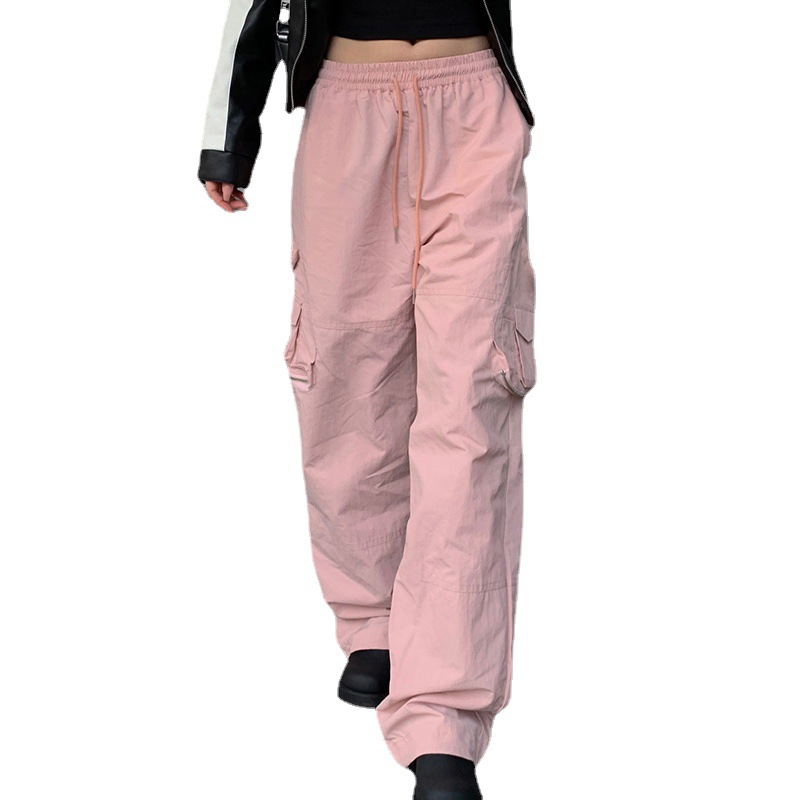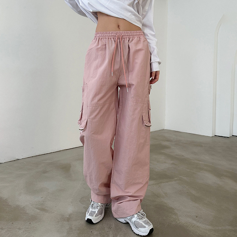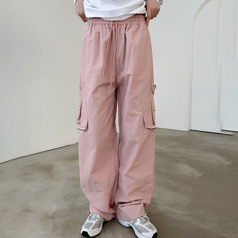 American Street Three-dimensional Pocket Elastic Waist Tie Cargo Pants