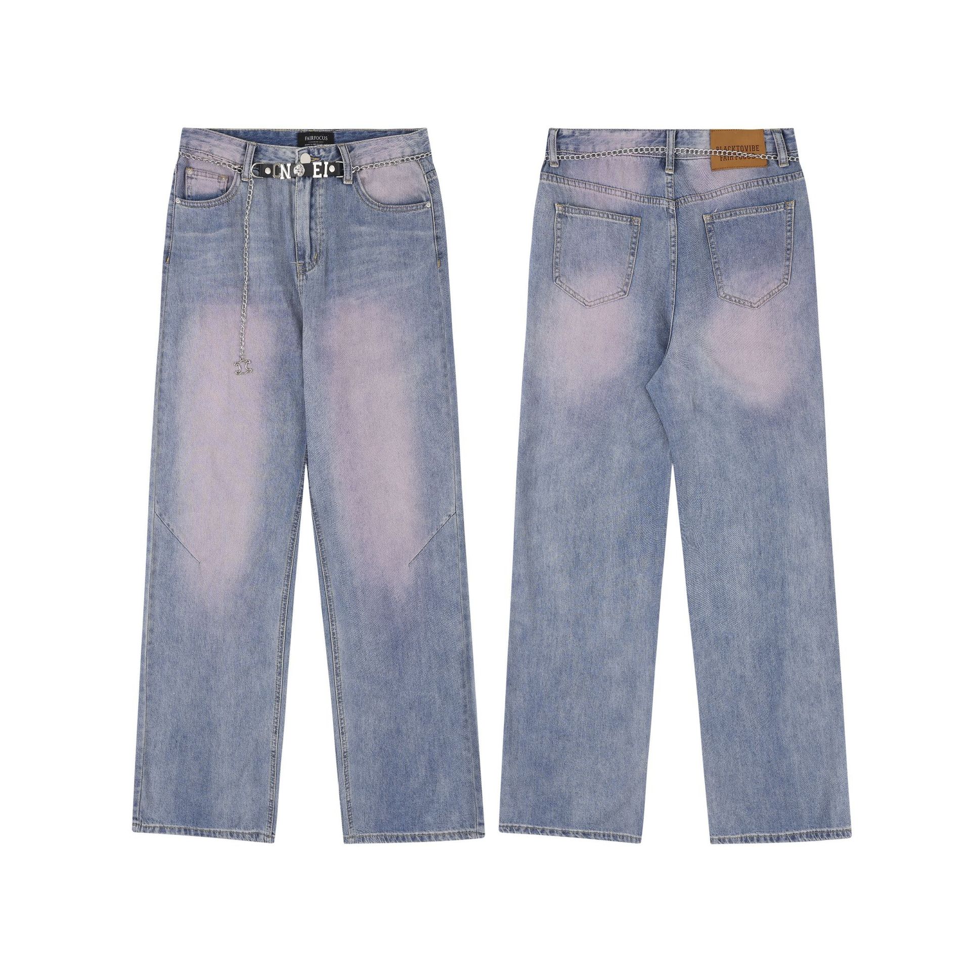 American-style Distressed Heavy Industry Straight Casual Jeans