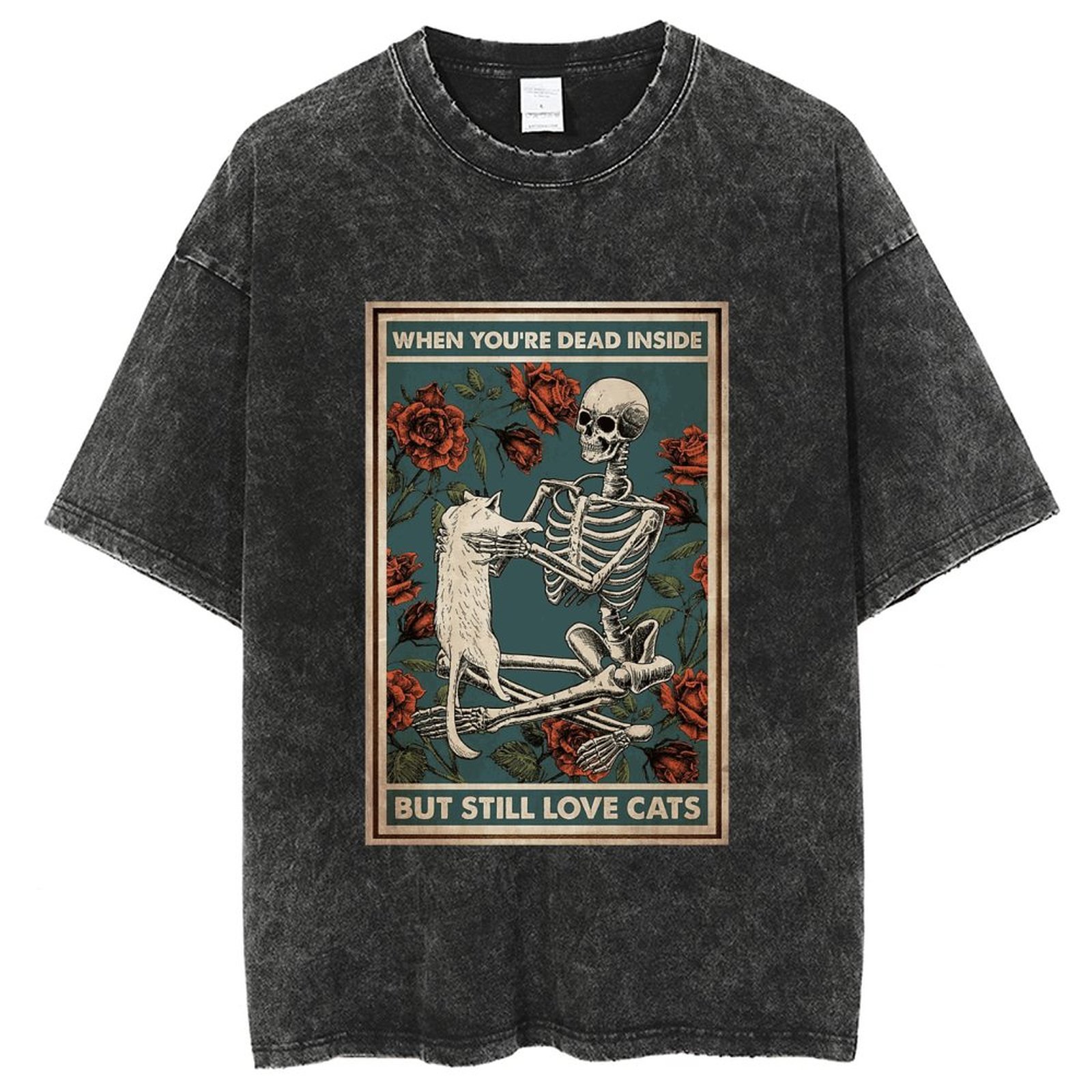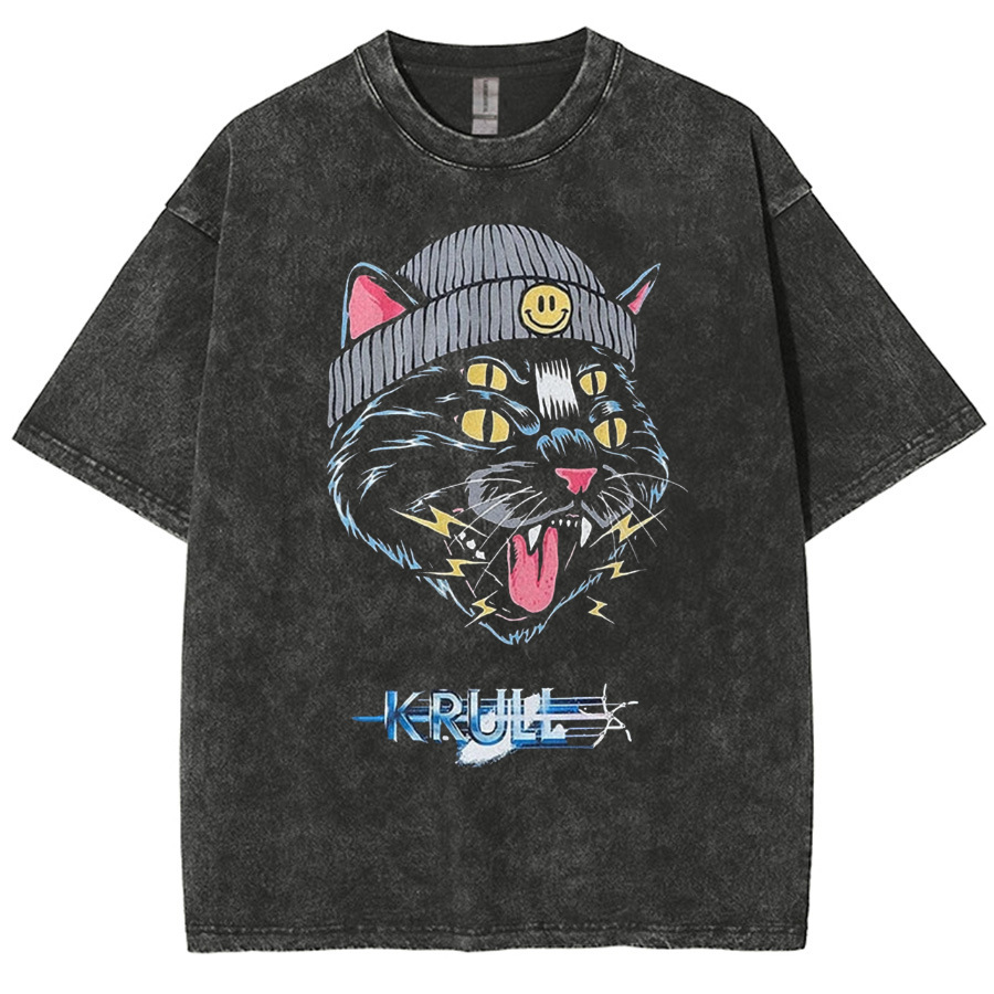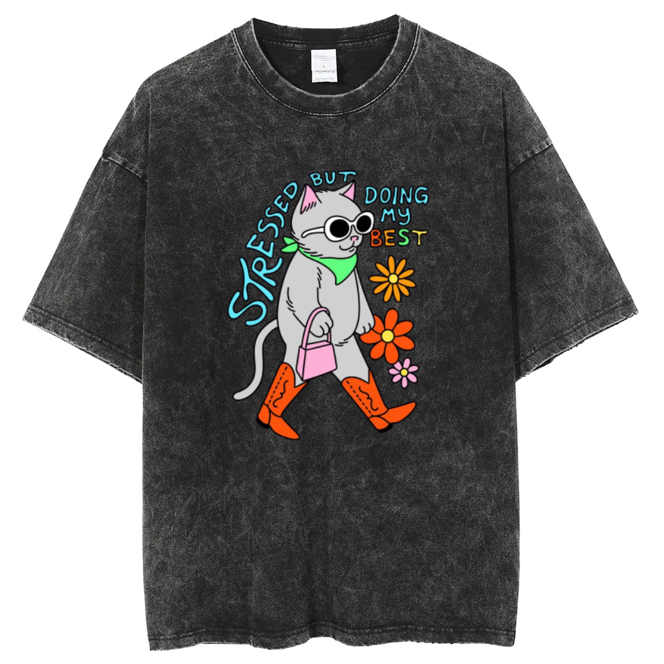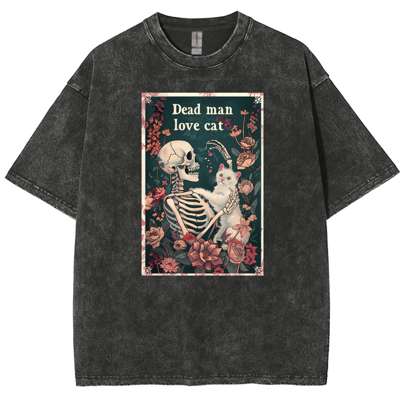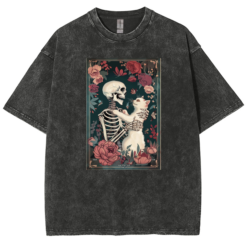 American style hip hop skull pattern cat print T-shirt