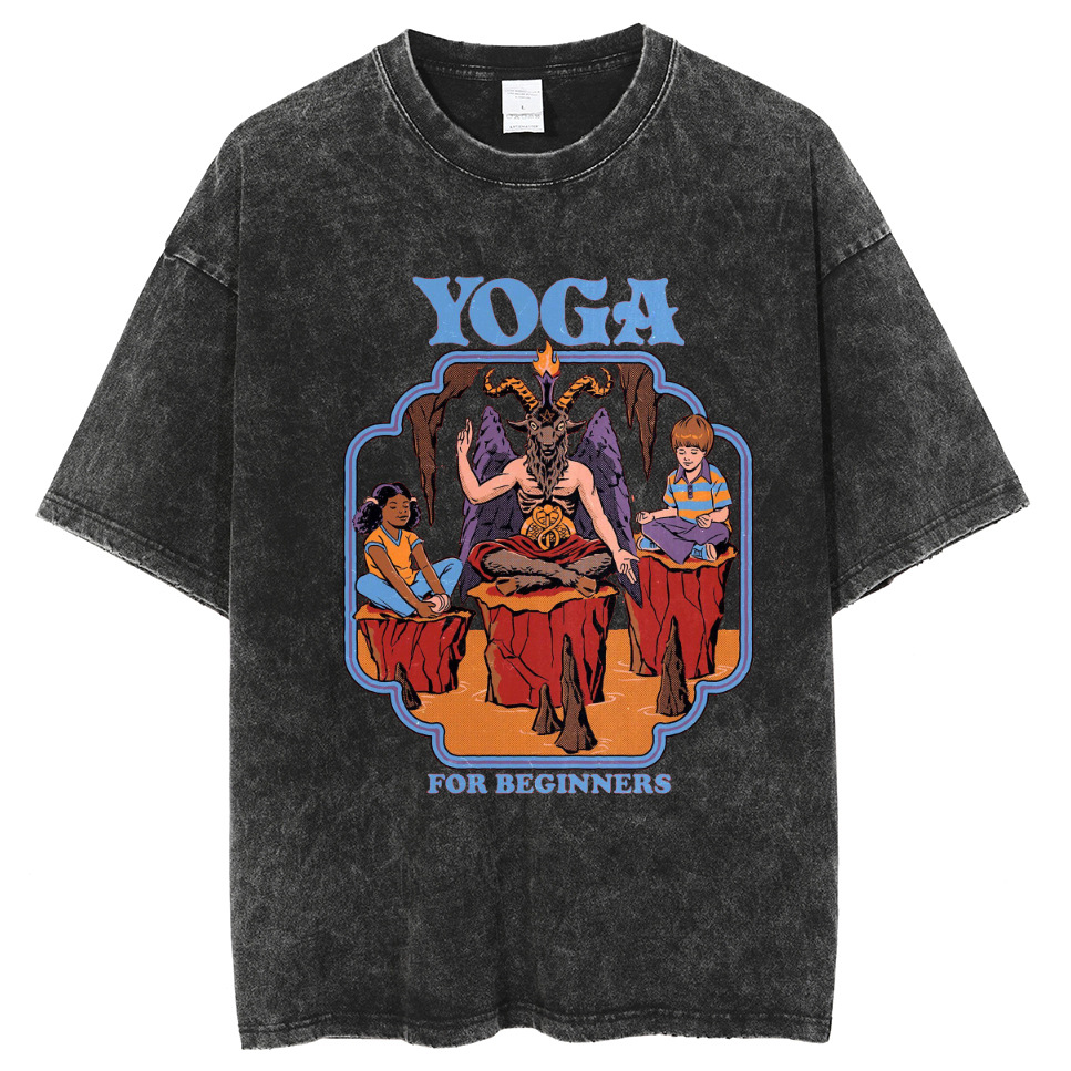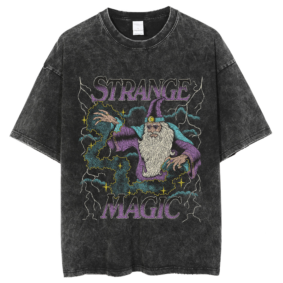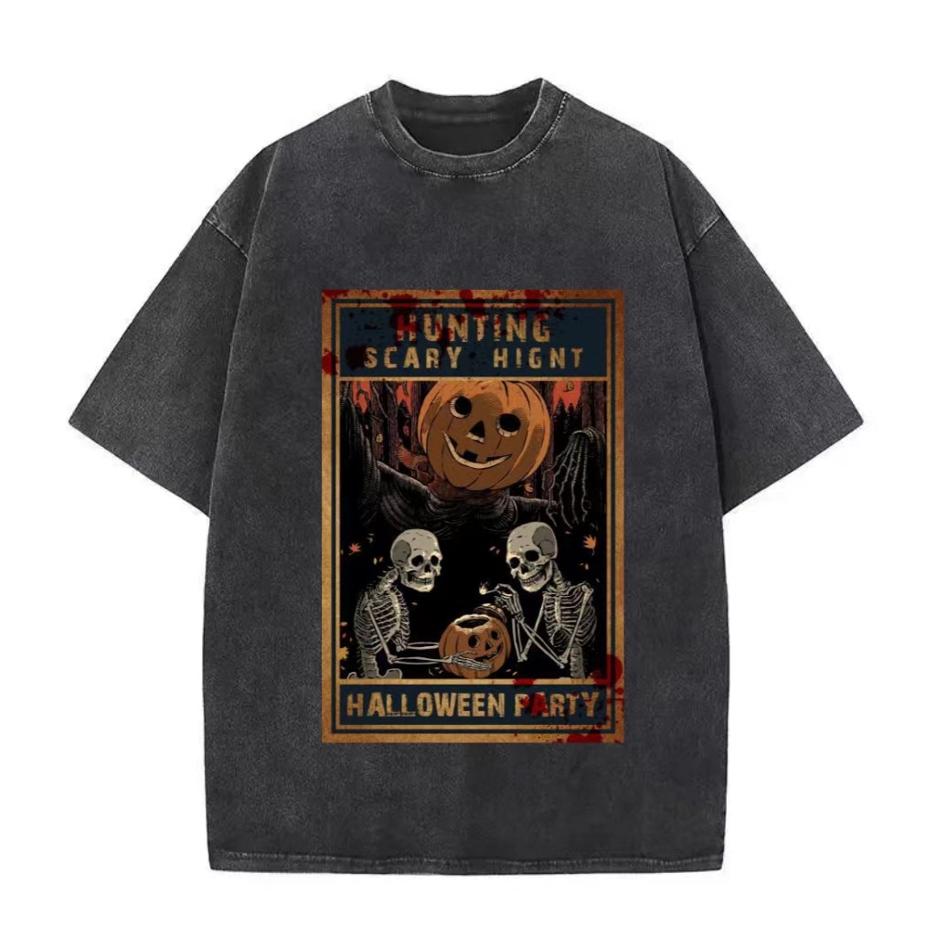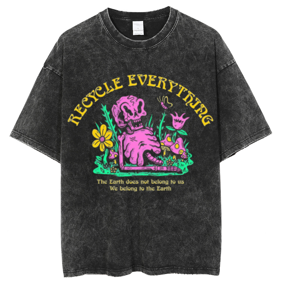 American style hip hop skull pattern cat print T-shirt